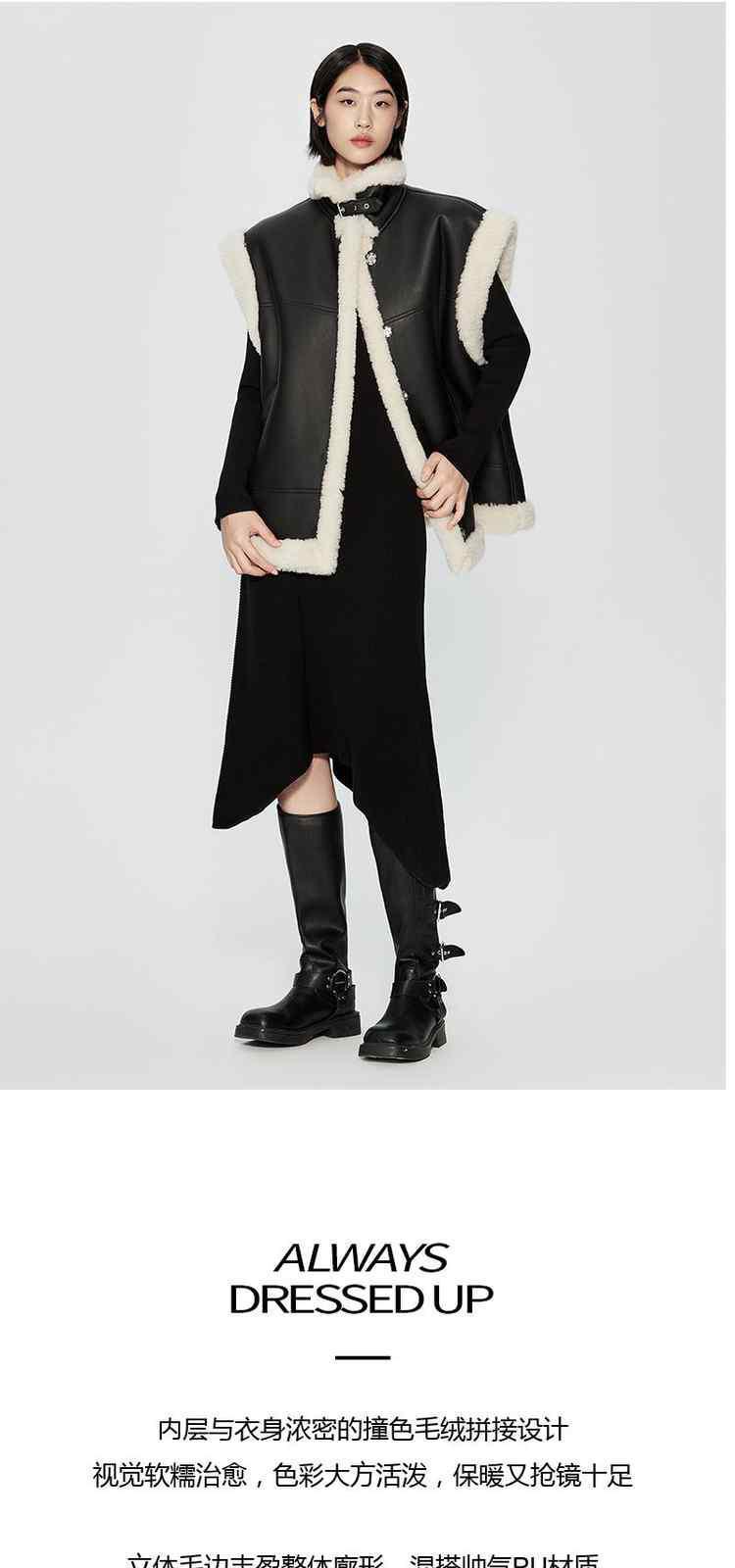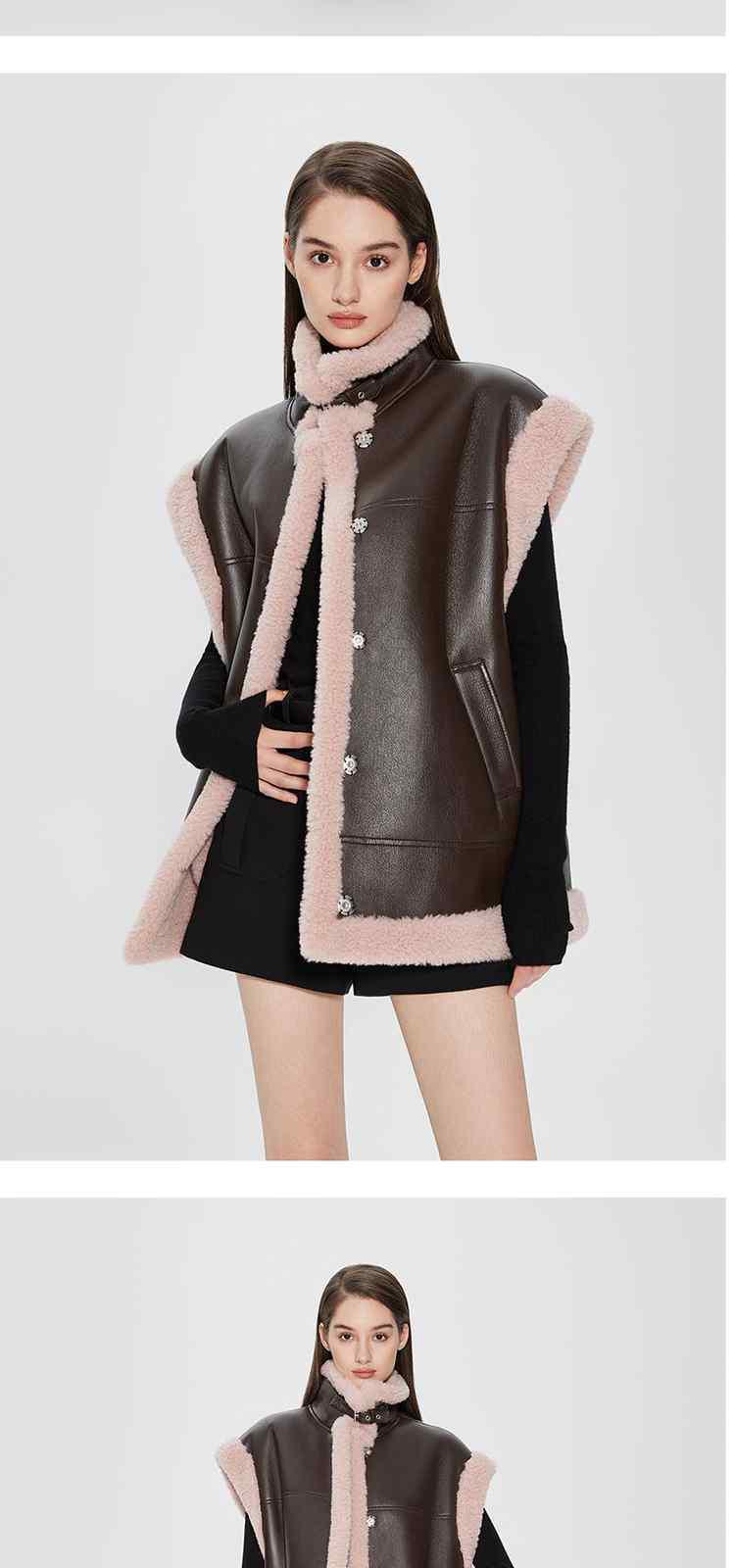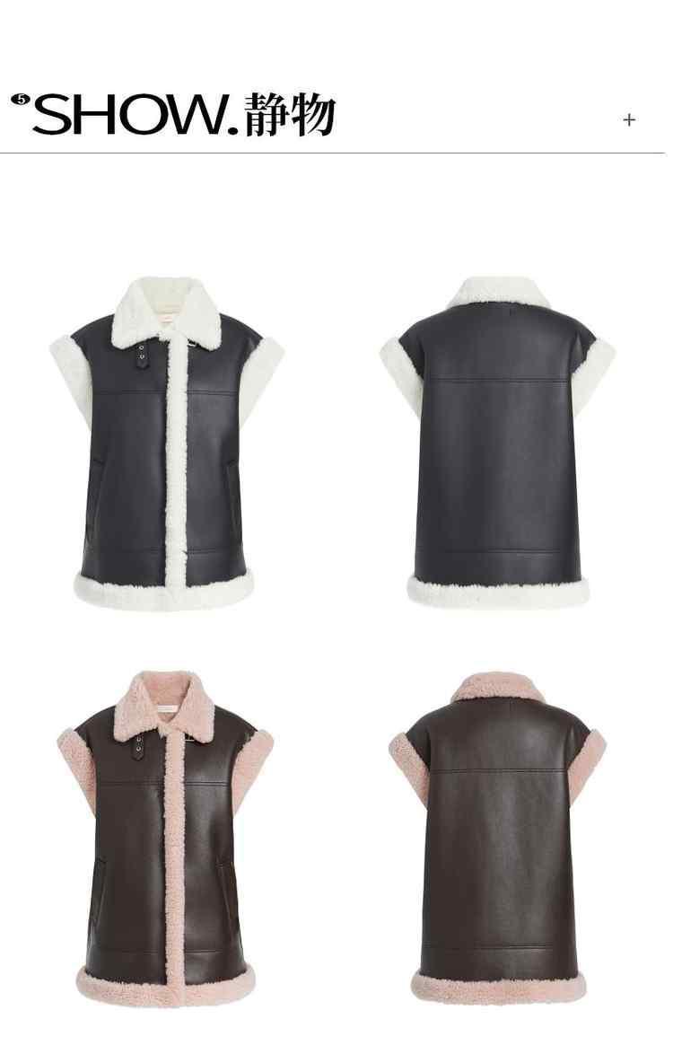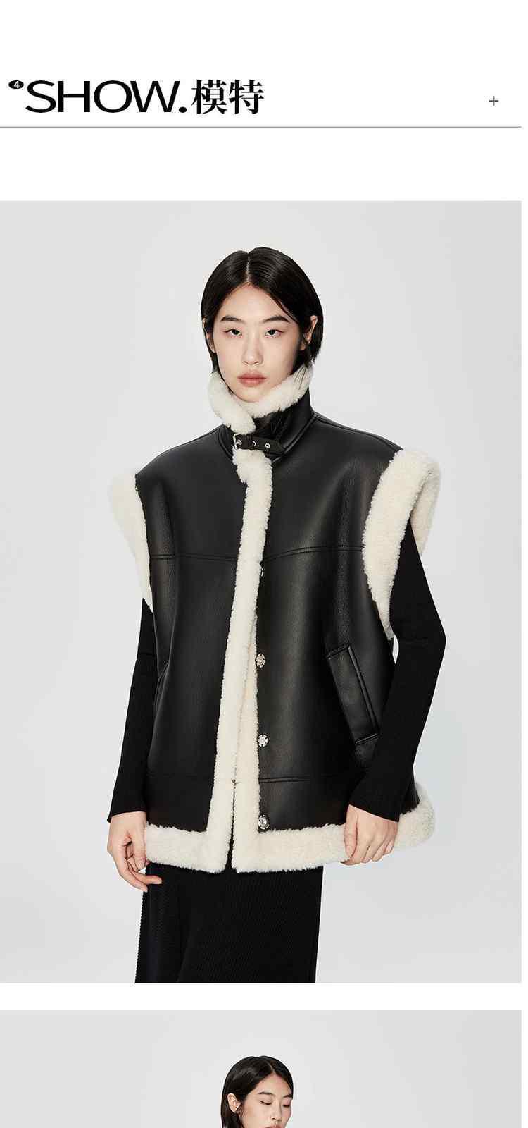 商品名称:春装 拼接仿皮草保暖机能风PU皮马甲外套女 710351