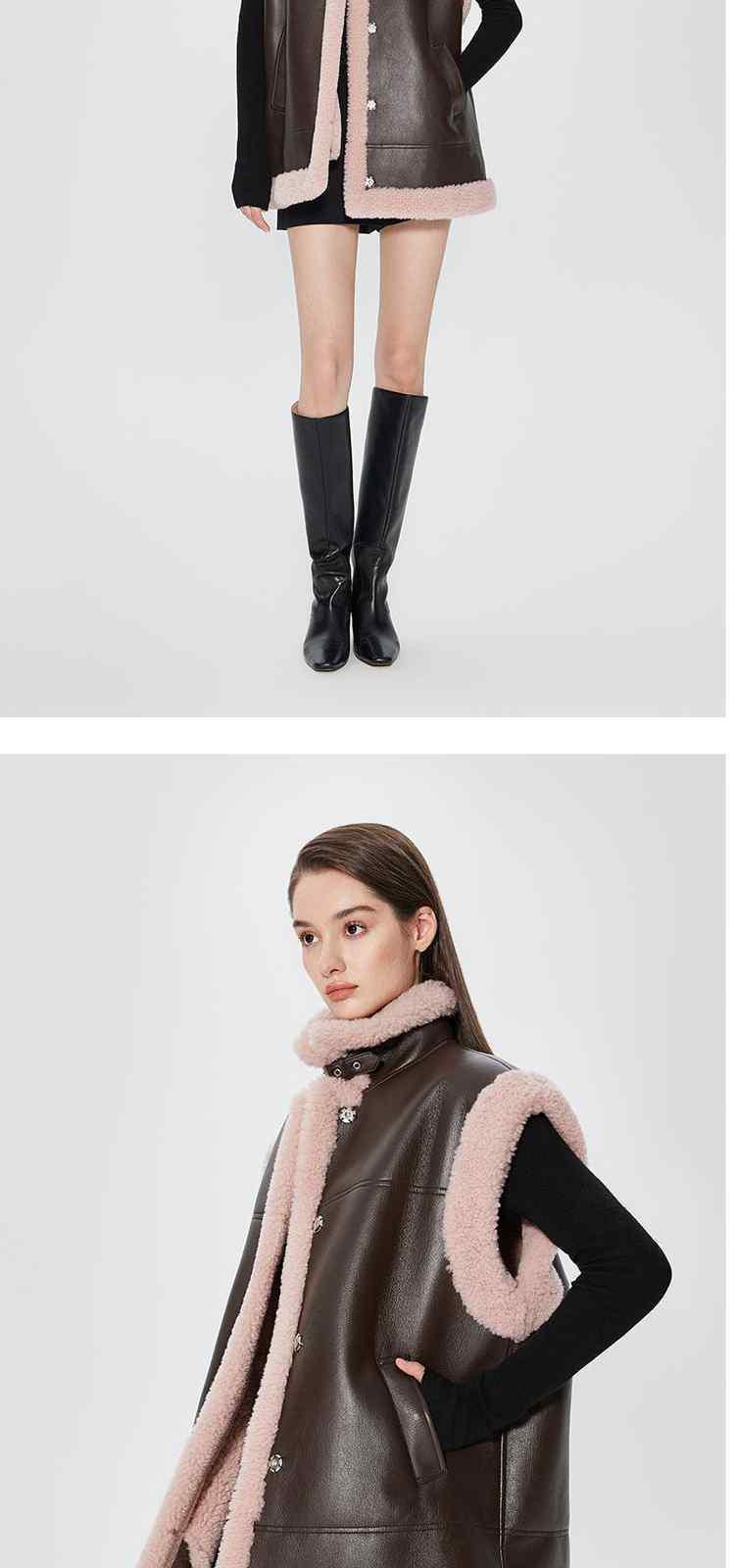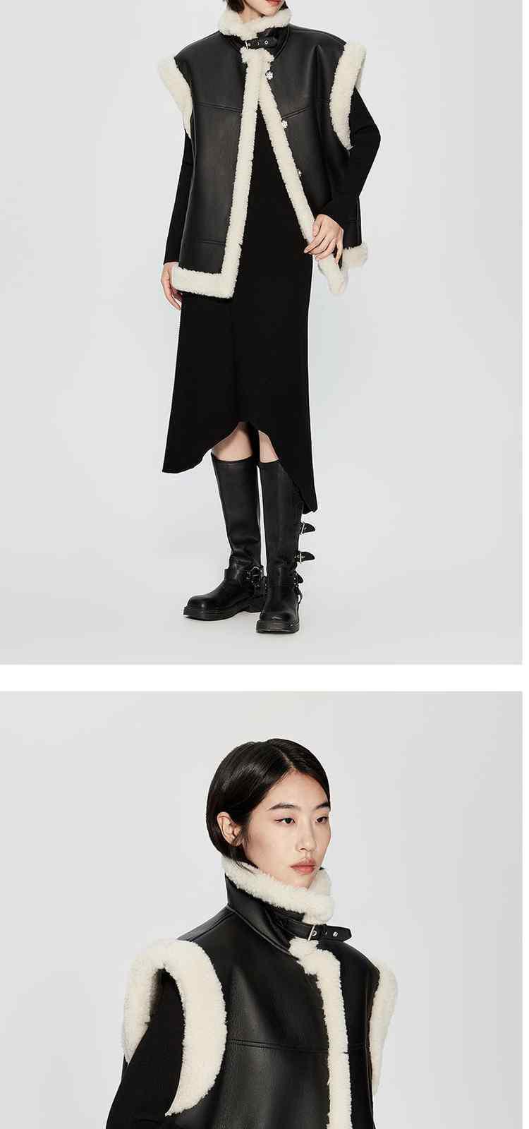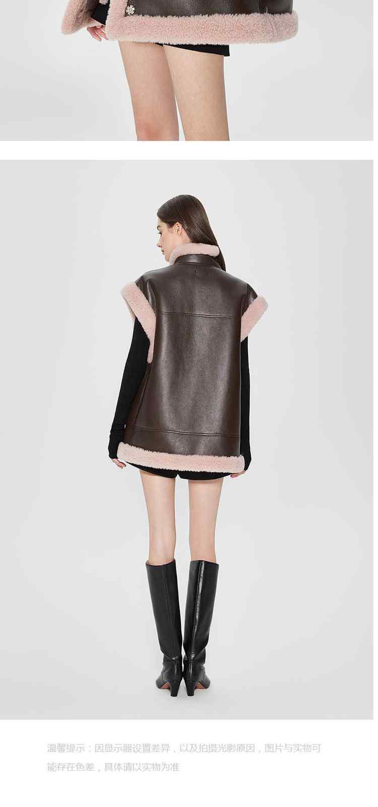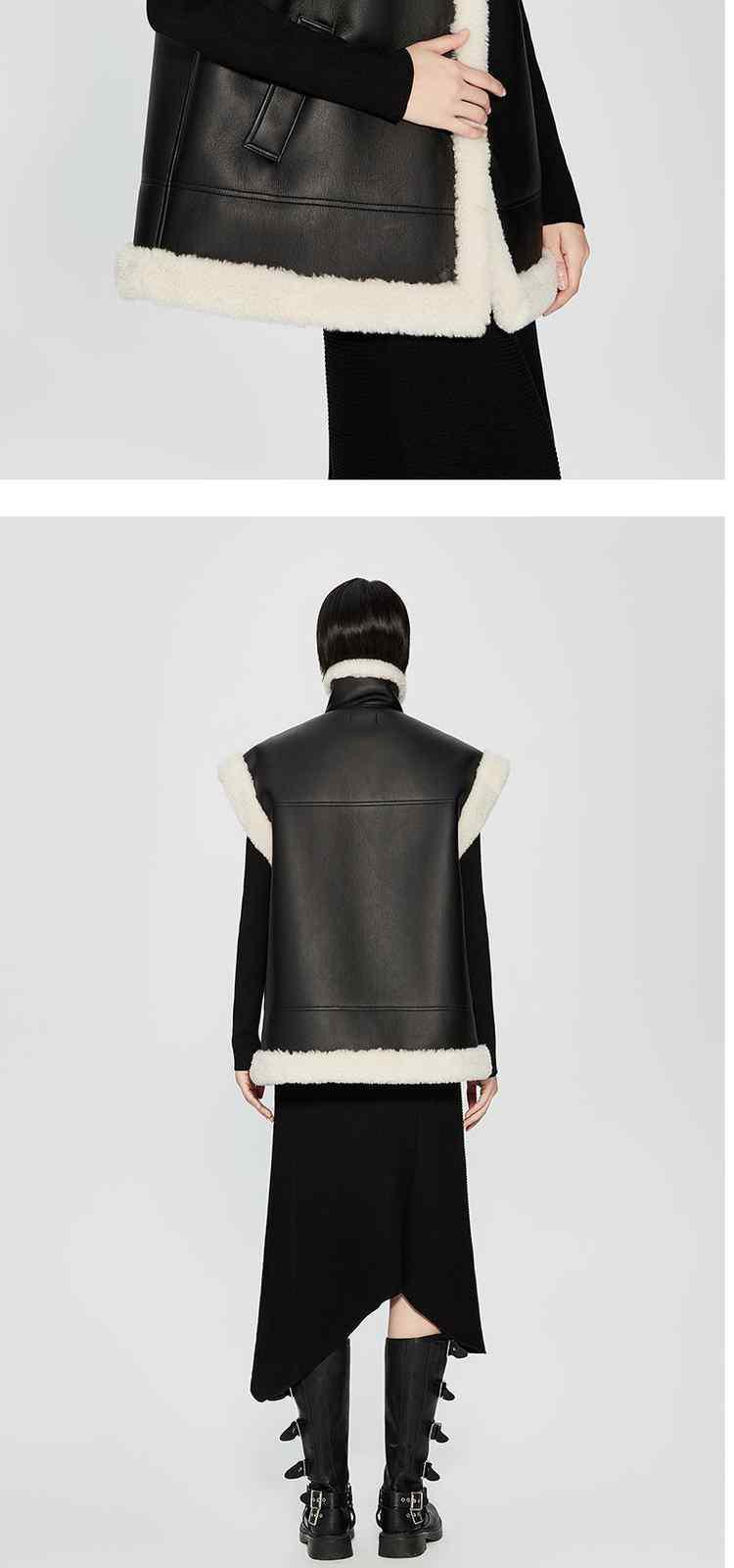 商品名称:春装 拼接仿皮草保暖机能风PU皮马甲外套女 710351