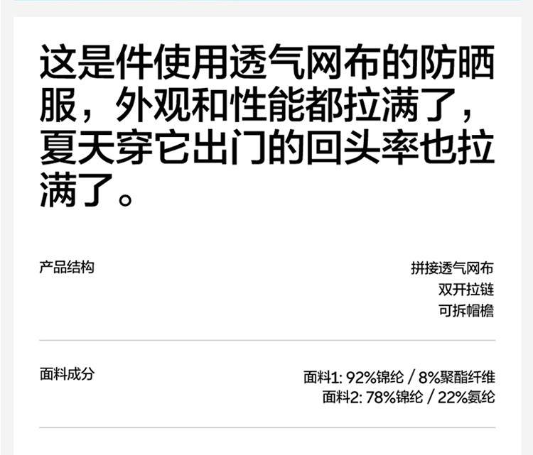 商品名称:【王一博同款】702UV防晒衣户外防泼水双开拉链晒男女同款 228165