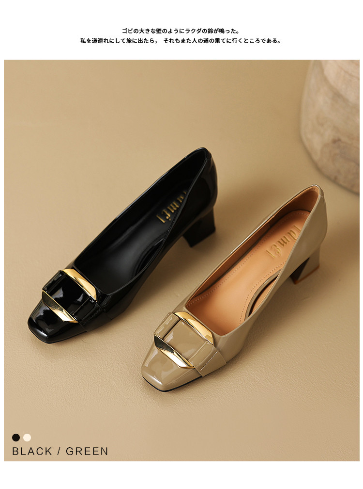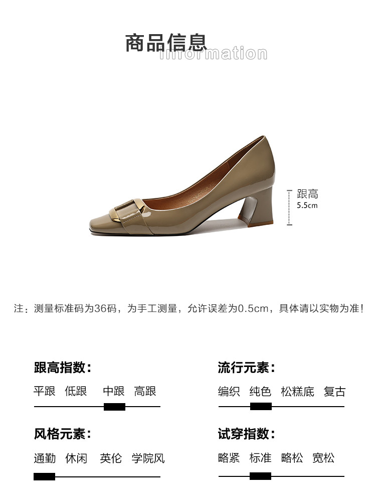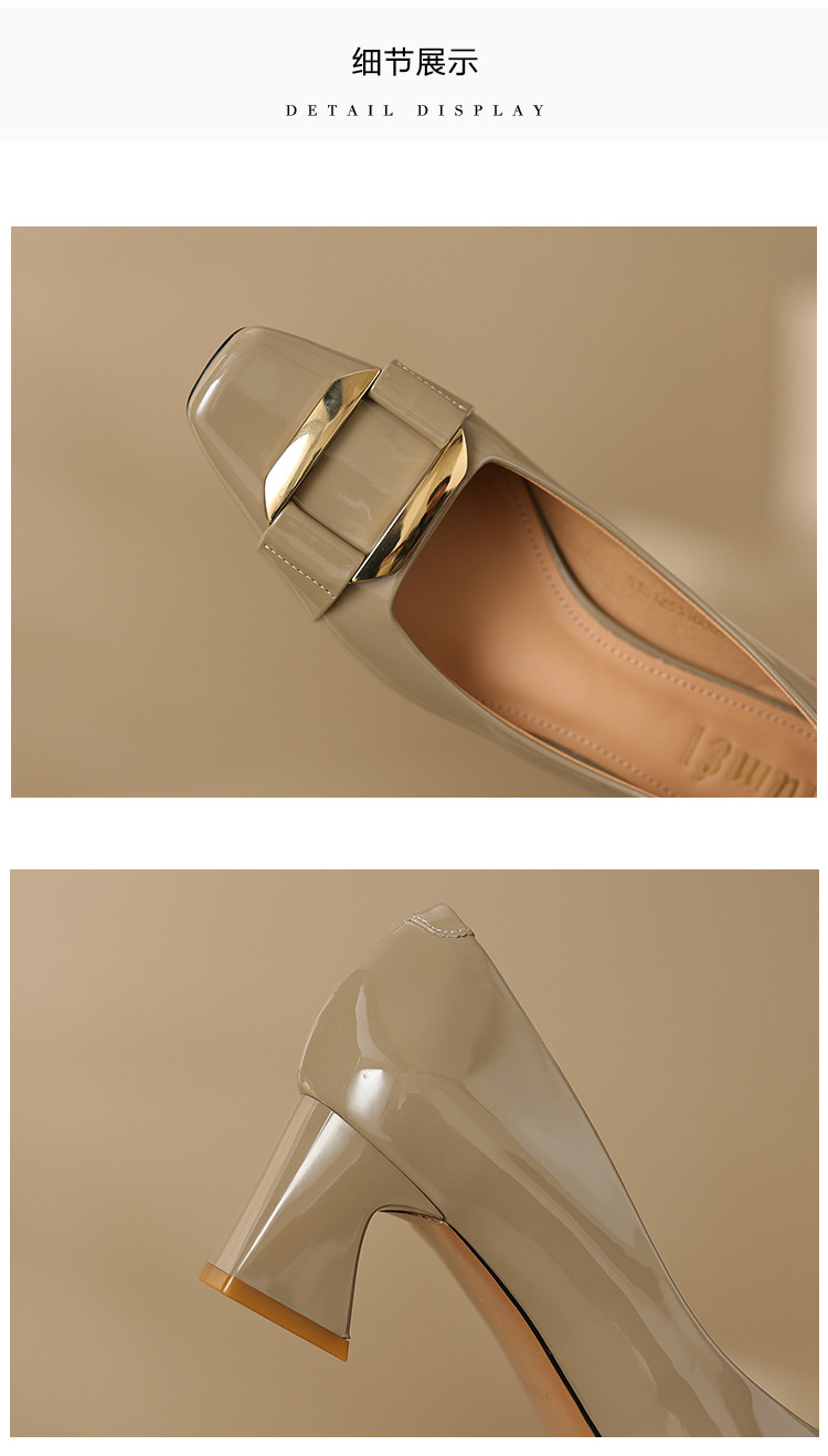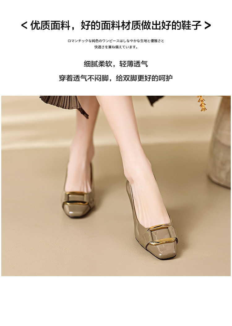 商品名称:通勤简约马蹄跟方头金属扣件单鞋女鞋 263809