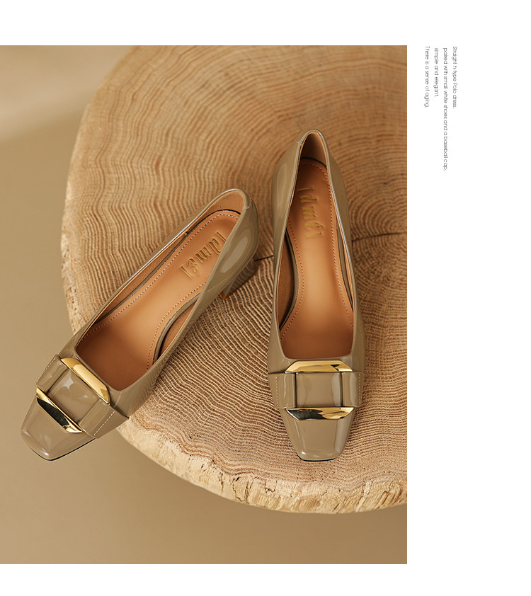 通勤简约马蹄跟方头金属扣件单鞋女鞋 263809