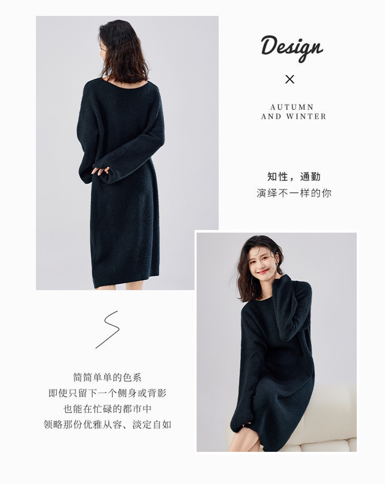 商品名称:秋装法式优雅高级感慵懒风打底长袖毛衣针织连衣裙女 971231