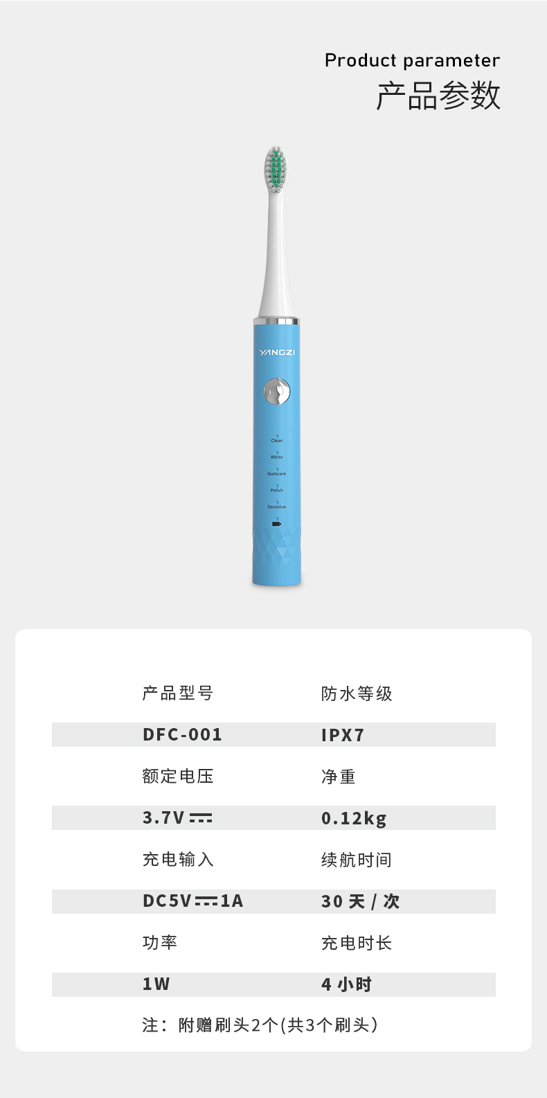 商品名称:扬子DFC-001电动牙刷(充电款)蓝色
