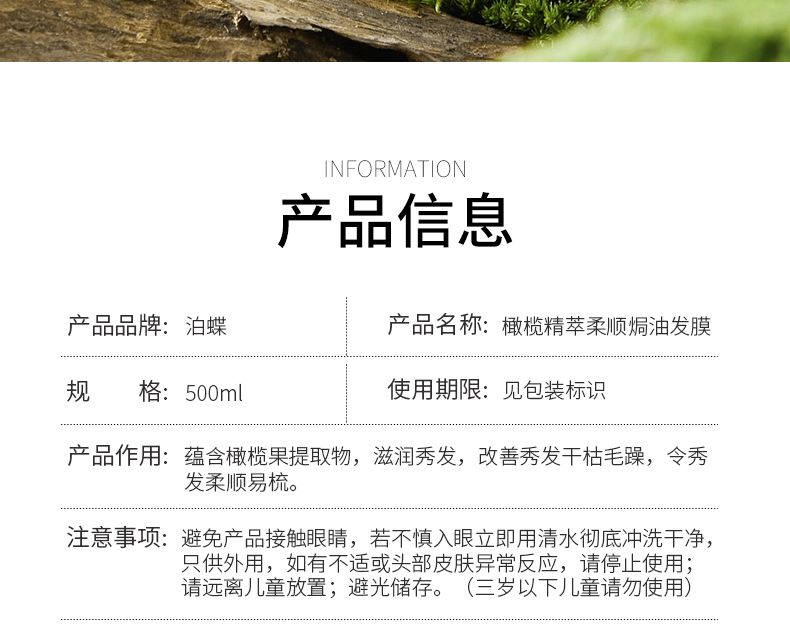 商品名称:泊蝶橄榄精粹柔顺焗油发膜500g保湿护发