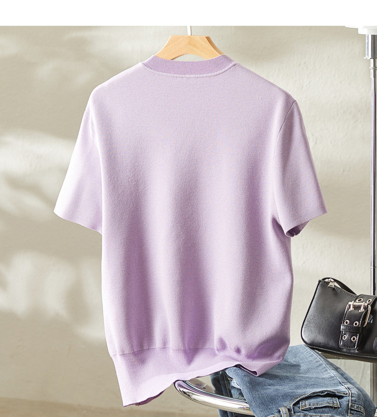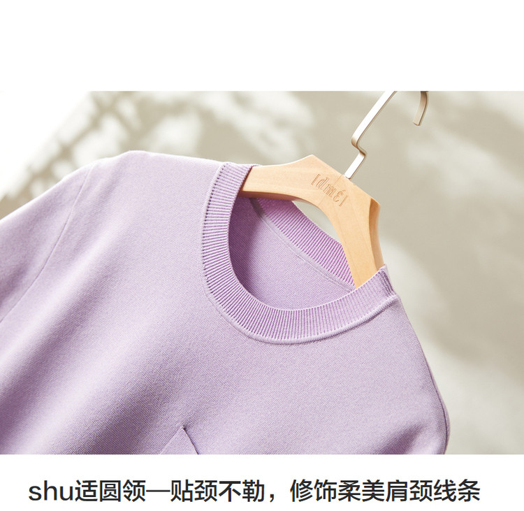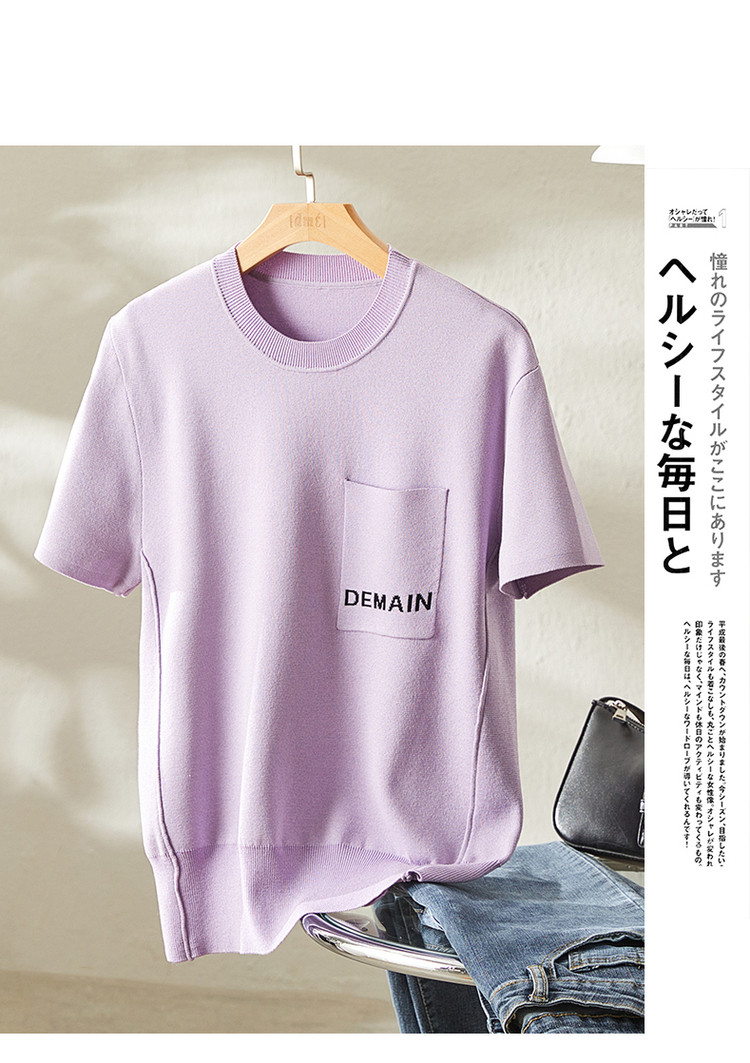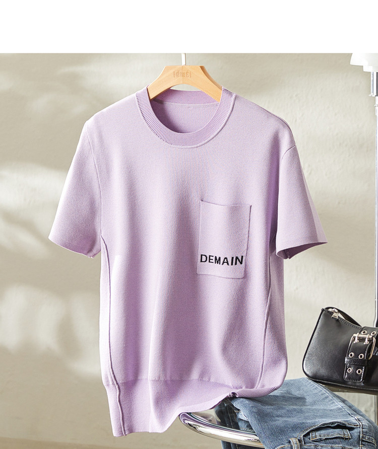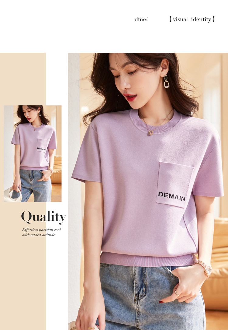 商品名称:【字母针织衫】夏季圆领短袖宽松通勤口袋水洗毛衣女 727105