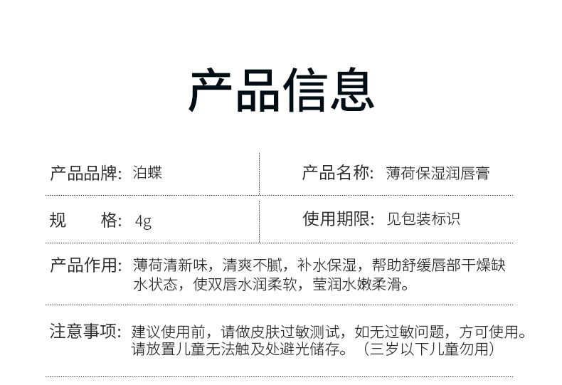 商品名称:泊蝶薄荷保湿润唇膏4g唇部护理