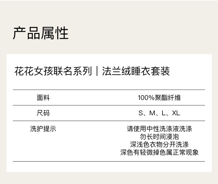 商品名称:NEIWAI内外塔卡沙花花女孩联名系列|法兰绒睡衣套装舒适 357386