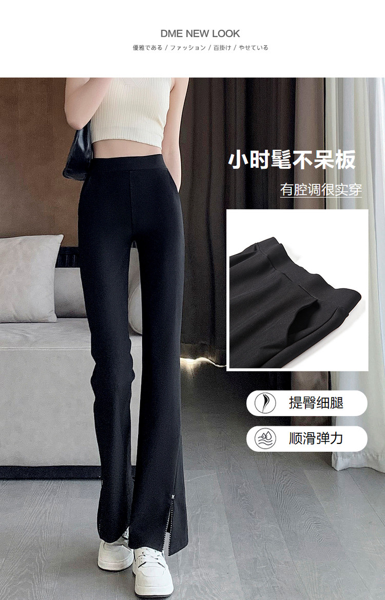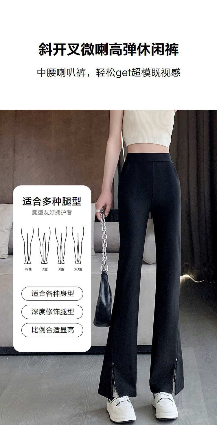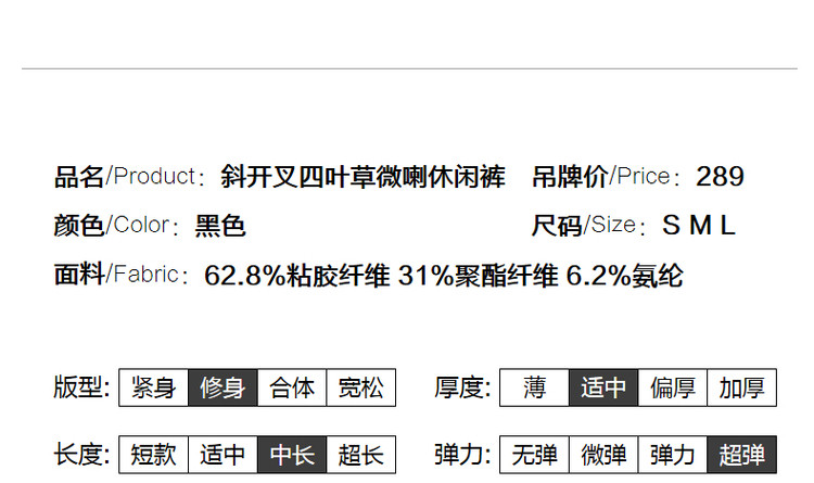 商品名称:【四叶草微喇休闲裤】春秋中腰修身长裤高弹松紧女裤子女 158401