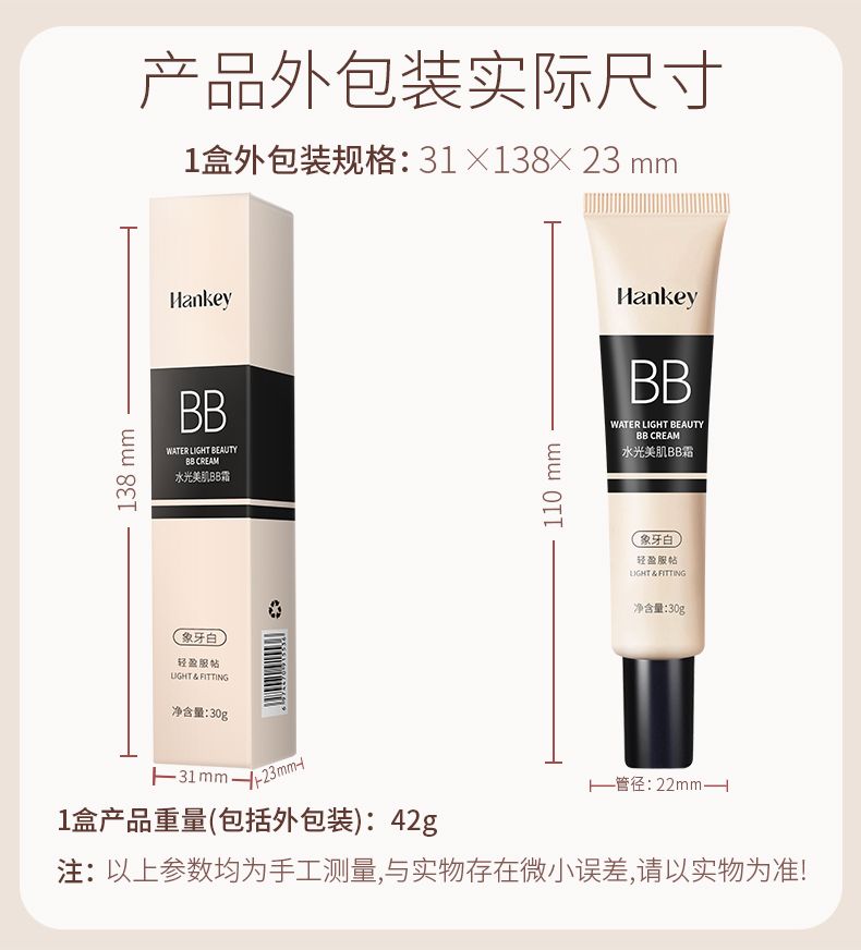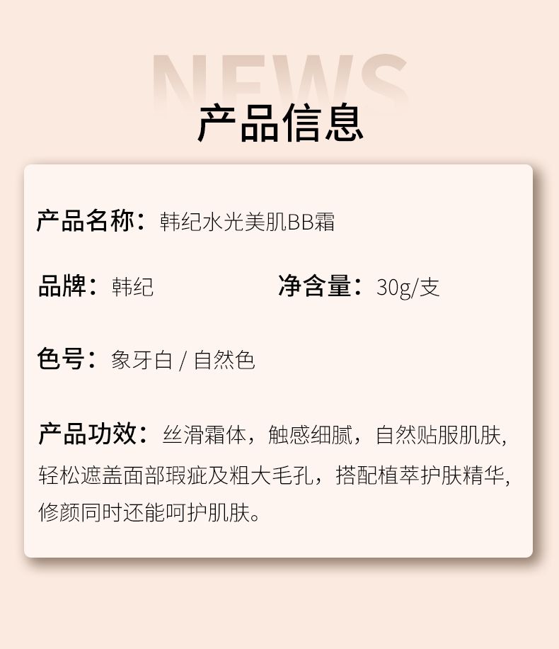 商品名称:Hankey/韩纪 水光美肌BB霜30ml 遮瑕