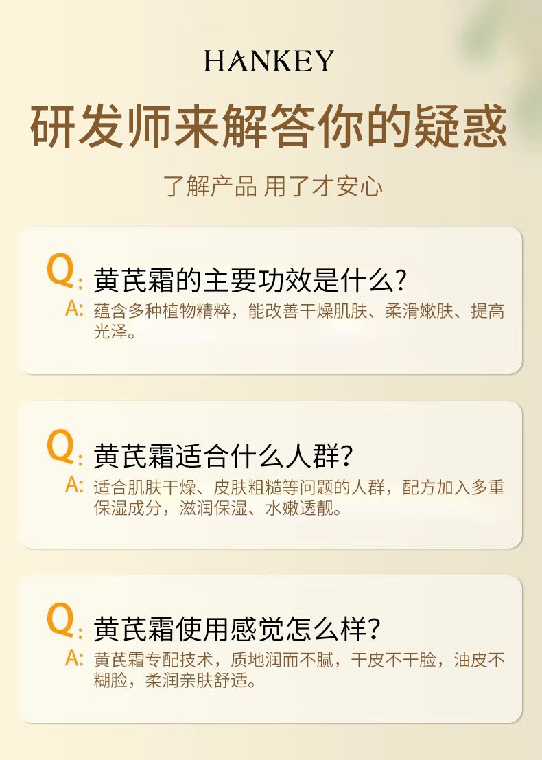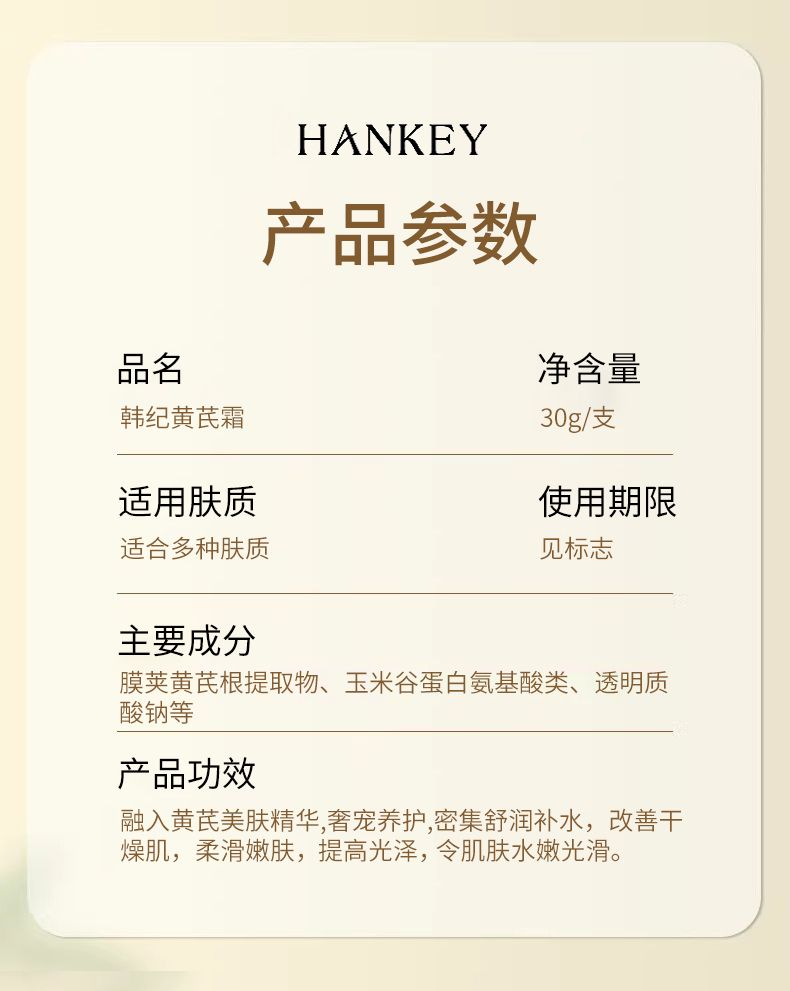 商品名称:Hankey/韩纪 黄芪霜30g保湿面霜