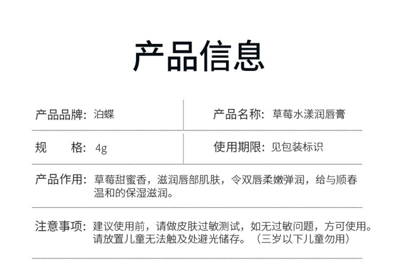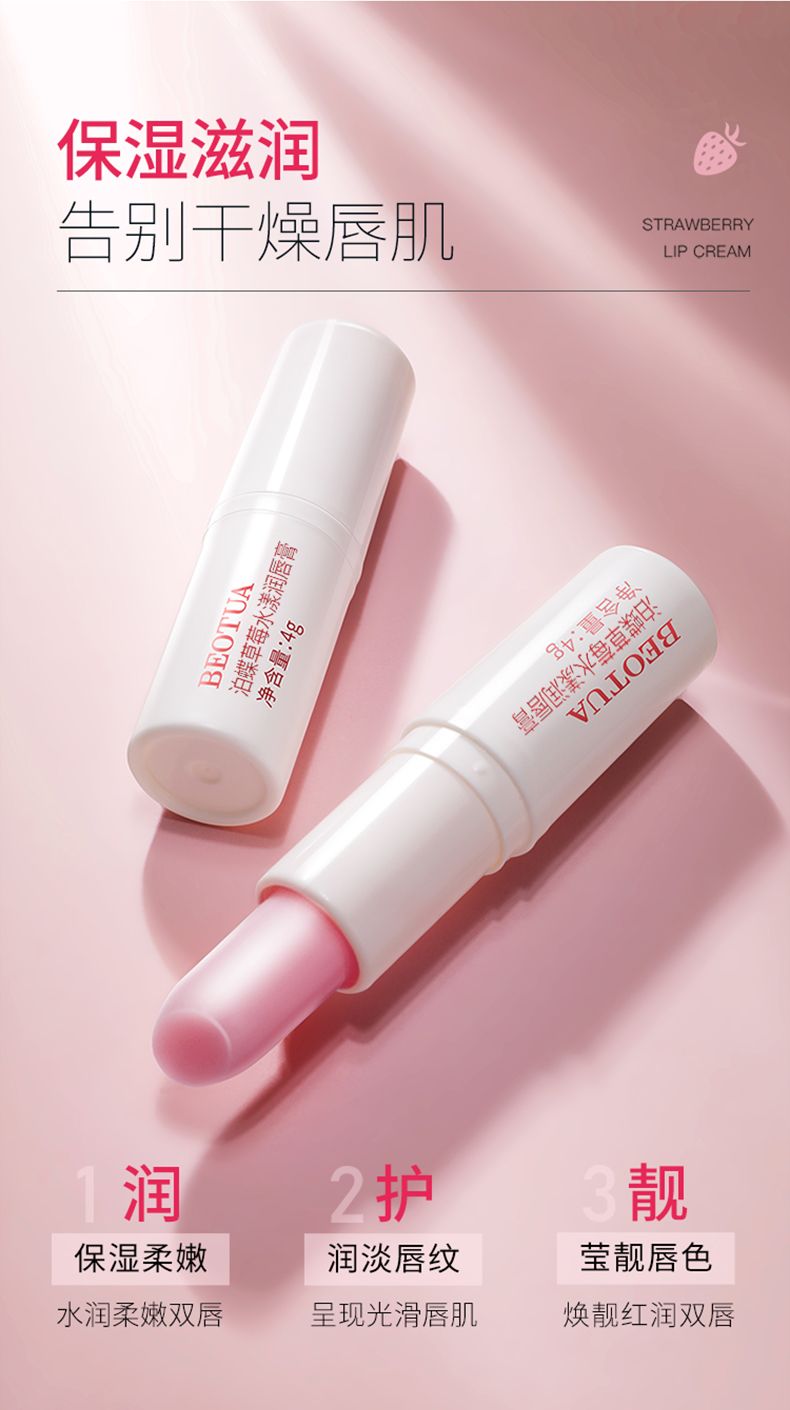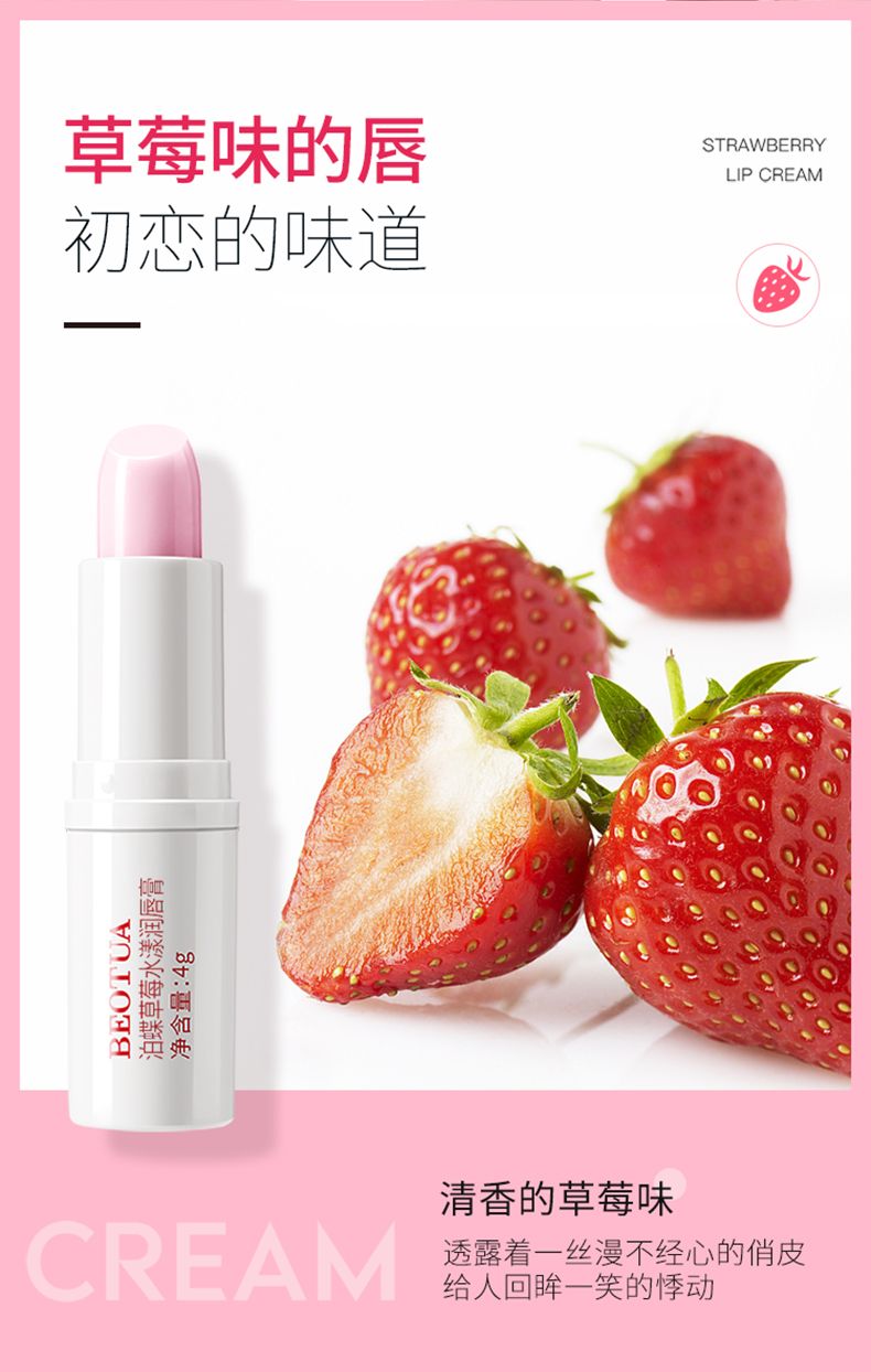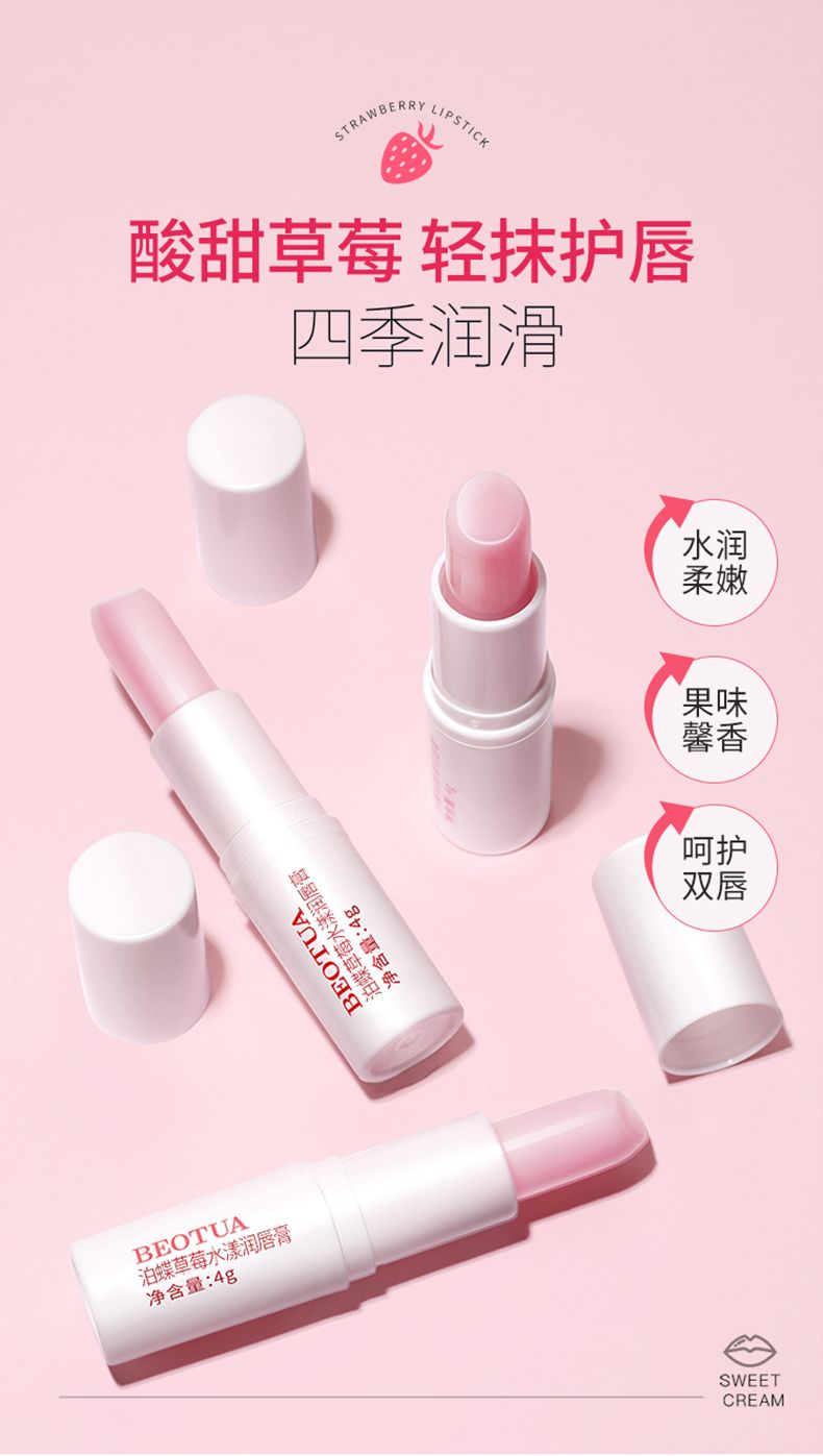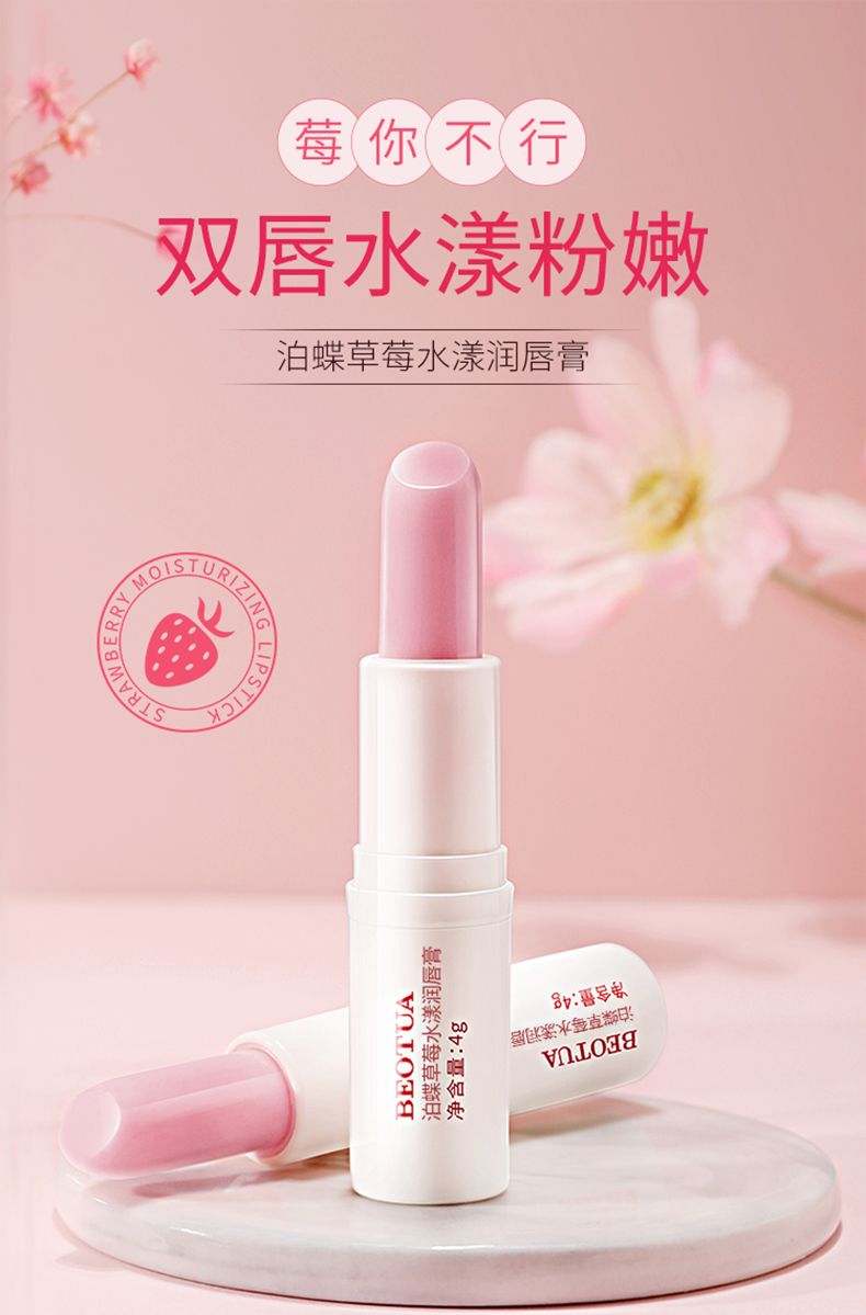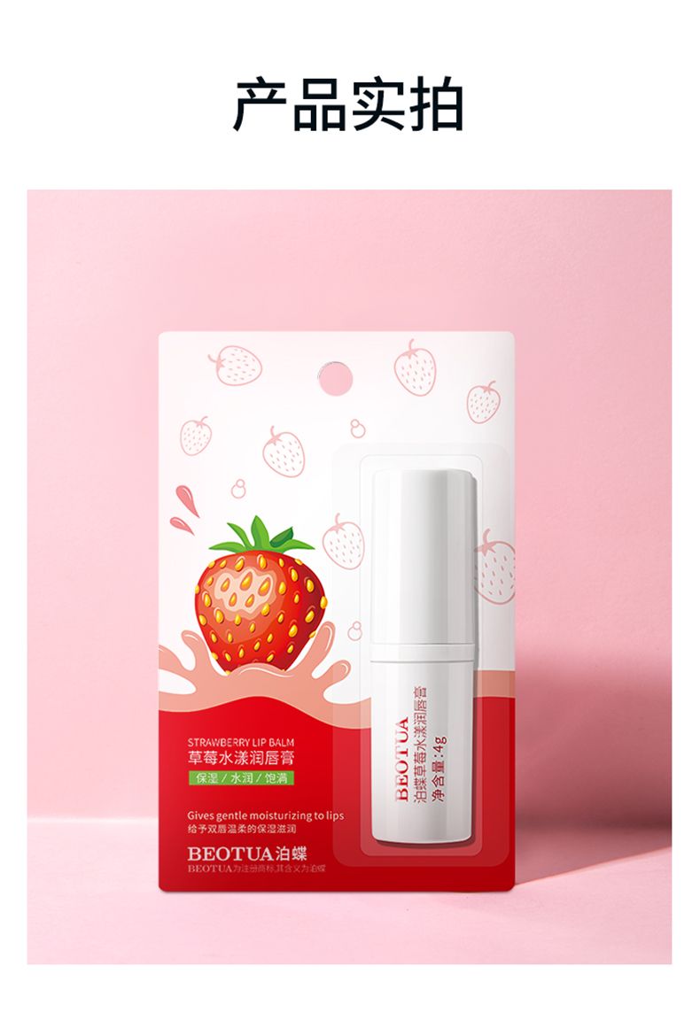 商品名称:泊蝶草莓水漾润唇膏4g保湿唇部护理