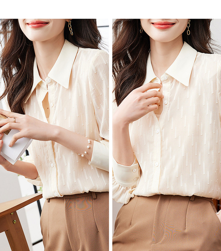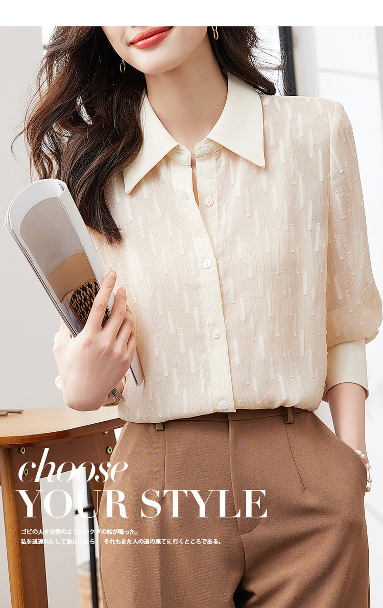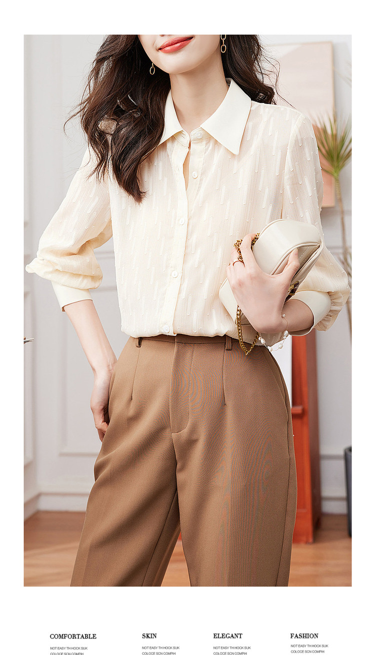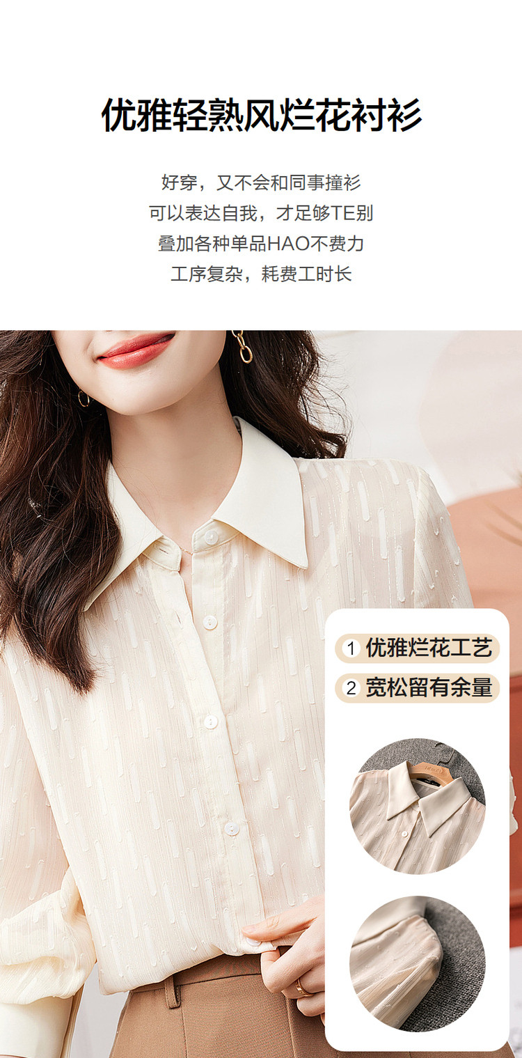 商品名称:【法式烂花衬衣】春秋季百搭通勤通勤翻领宽衬衫女上衣 837633