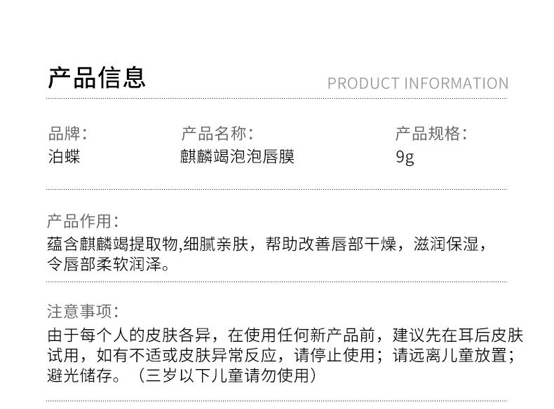 商品名称:泊蝶麒麟竭泡泡唇膜 9g保湿