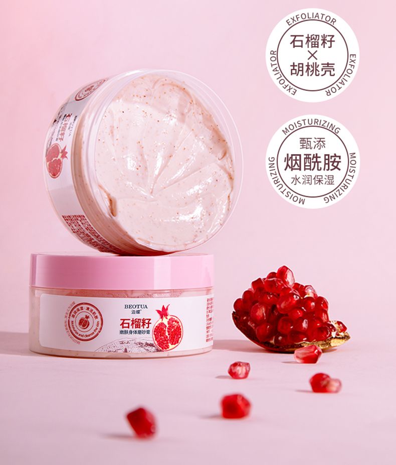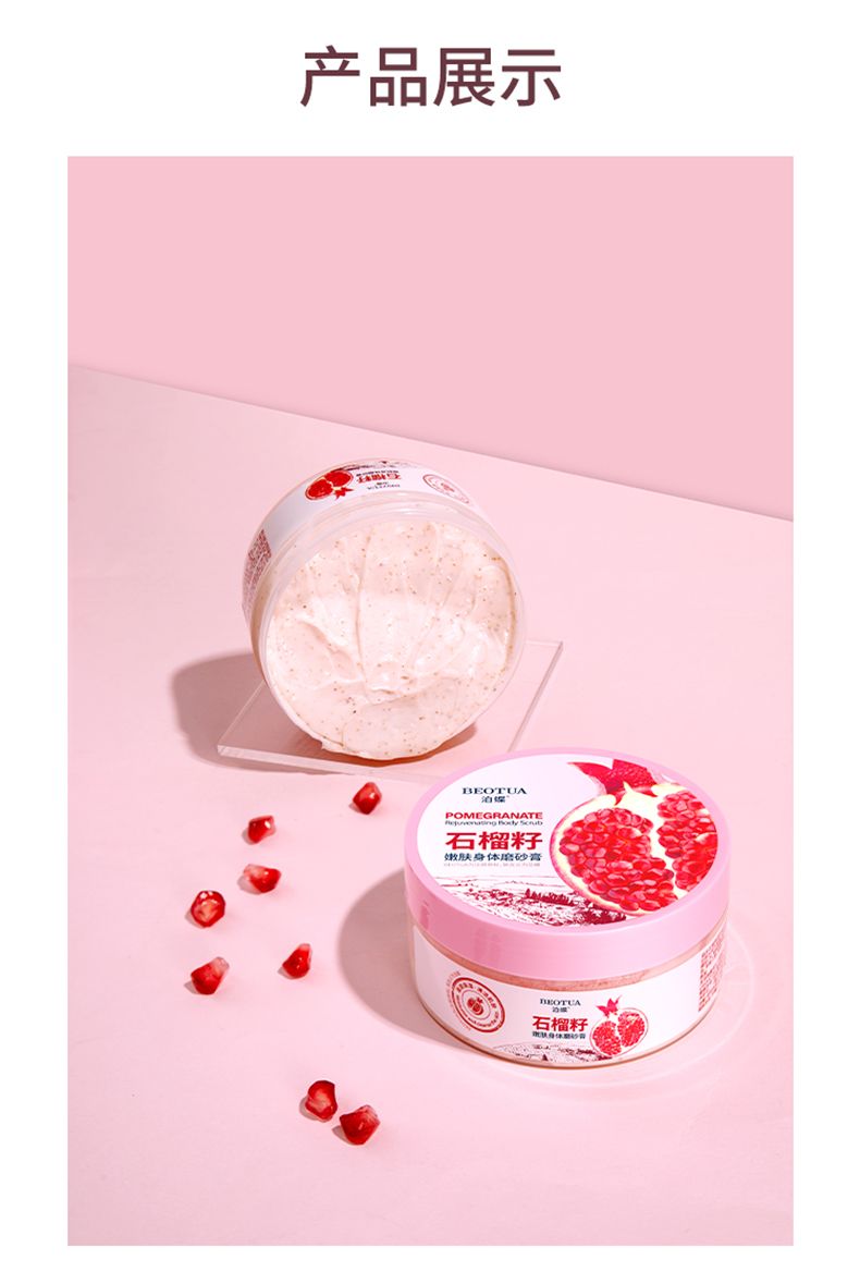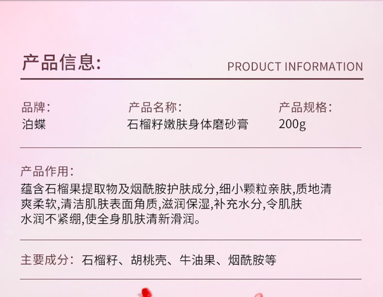 商品名称:泊蝶石榴籽嫩肤身体磨砂膏200g深层清洁保湿去角质