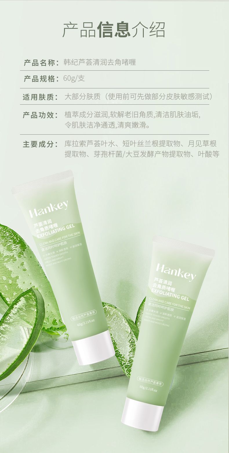 商品名称:Hankey/韩纪 芦荟清润去角质啫喱60g 深层清洁保湿