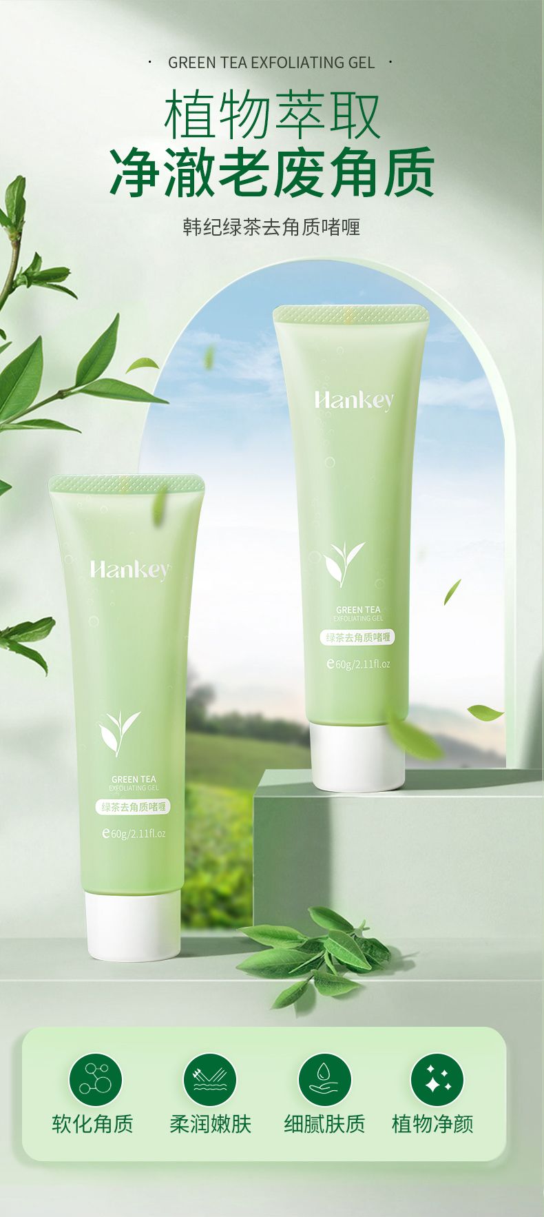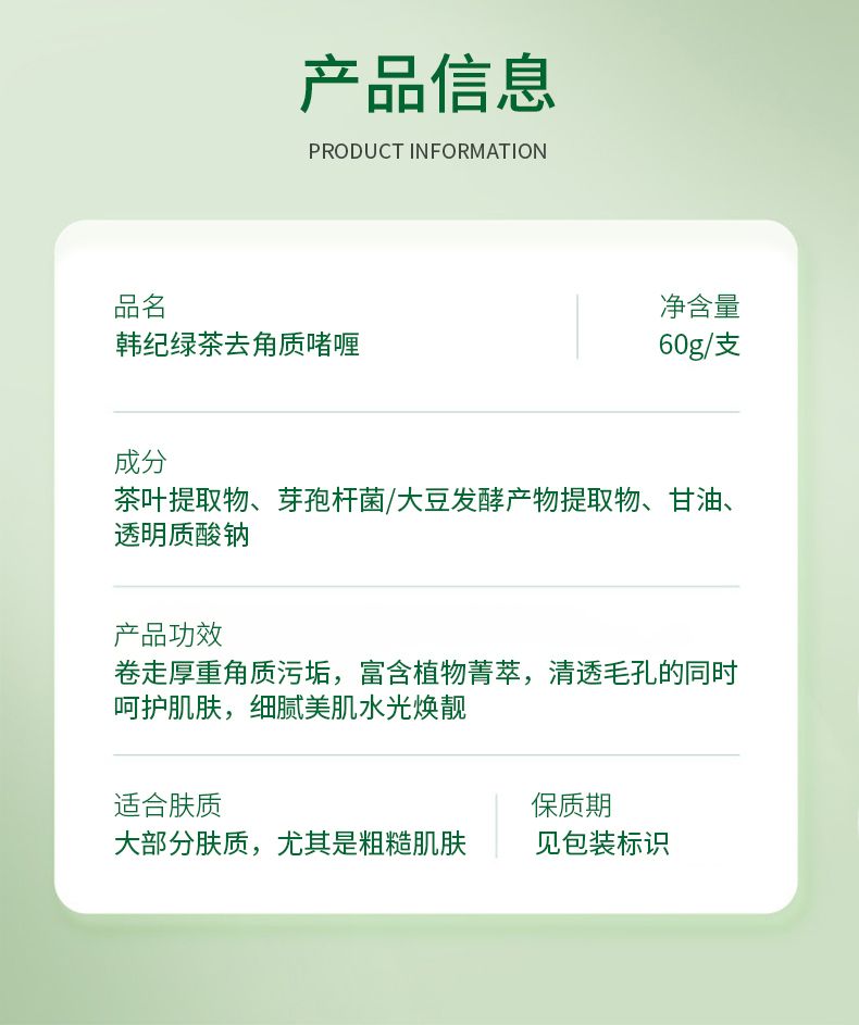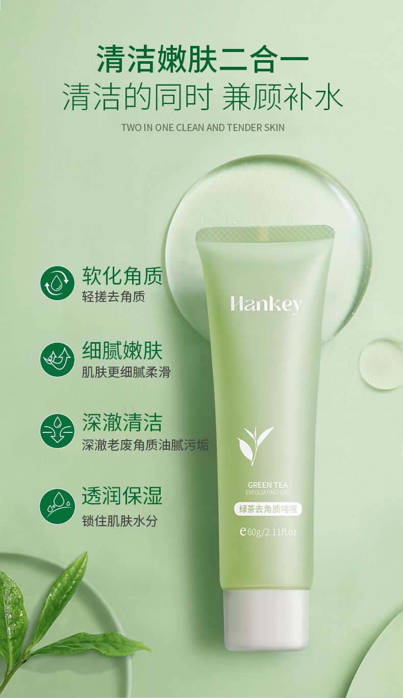 商品名称:Hankey/韩纪 绿茶去角质啫喱60g 深层清洁保湿