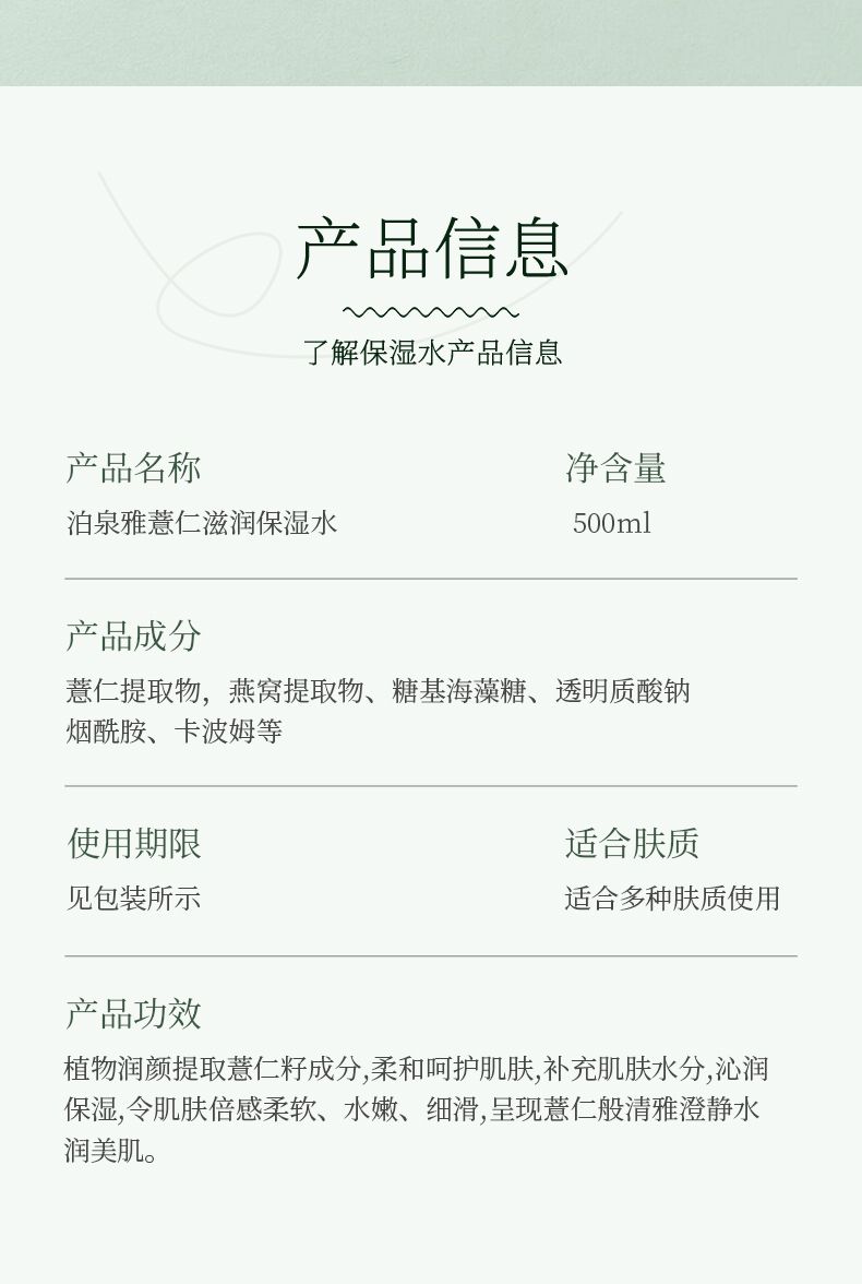 商品名称:泊泉雅薏仁滋润保湿水 500ml