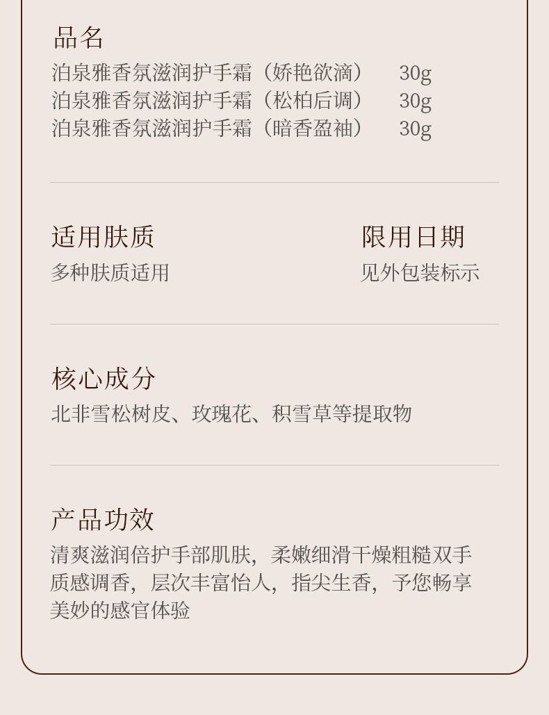 商品名称:泊泉雅香氛滋润护手霜30g保湿芳香手部护理