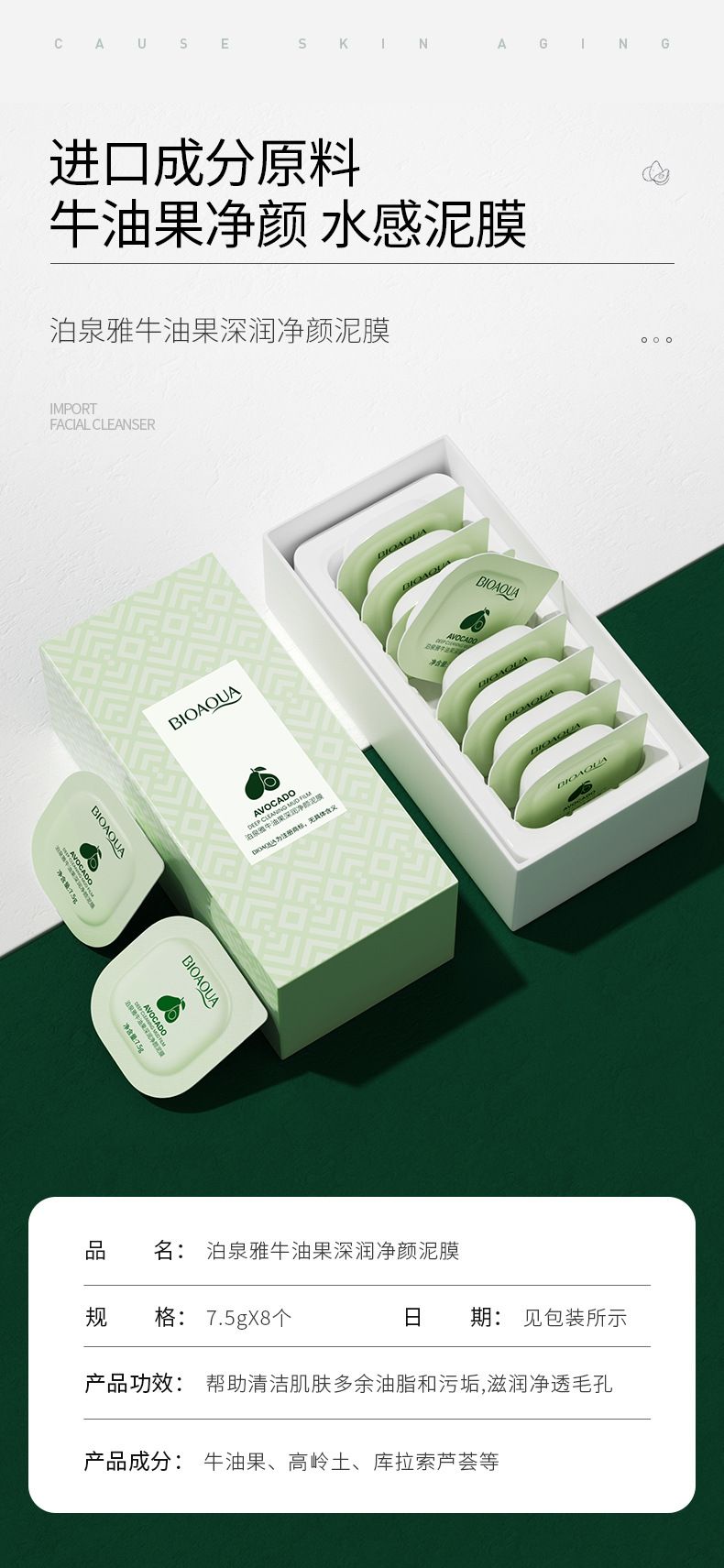 商品名称:泊泉雅牛油果柔润净颜泥膜 7.5g×8个 面部清洁保湿