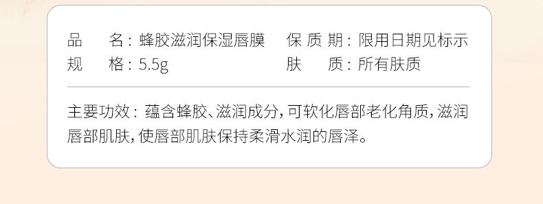 商品名称:韩婵蜂胶滋润保湿唇膜5.5g