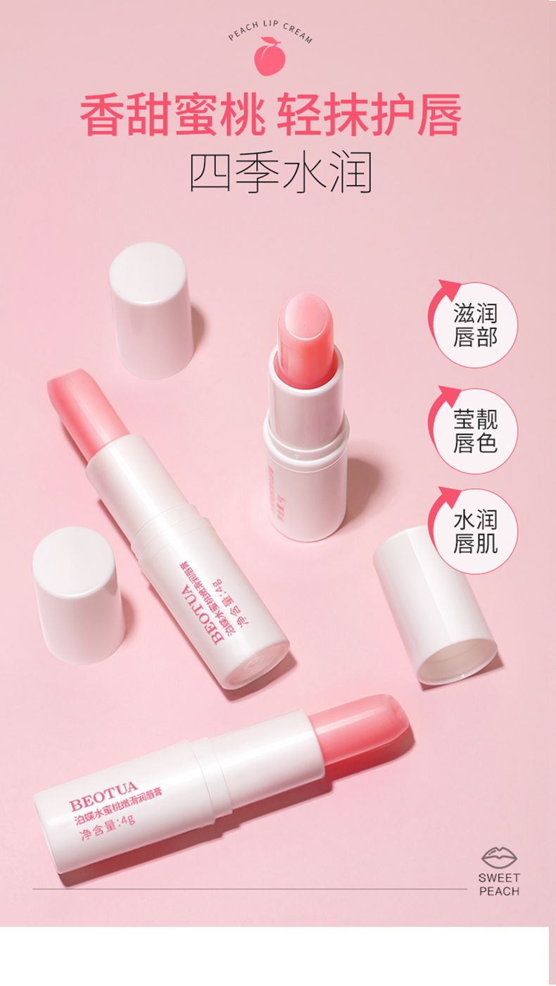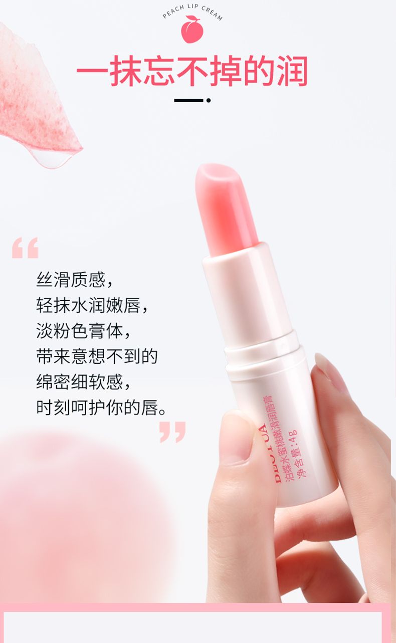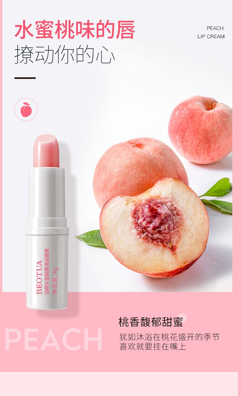 泊蝶水蜜桃嫩滑润唇膏4g保湿唇部护理