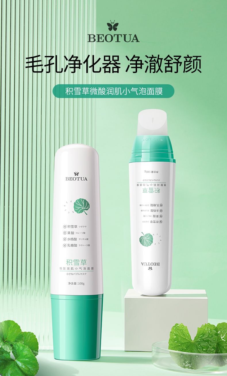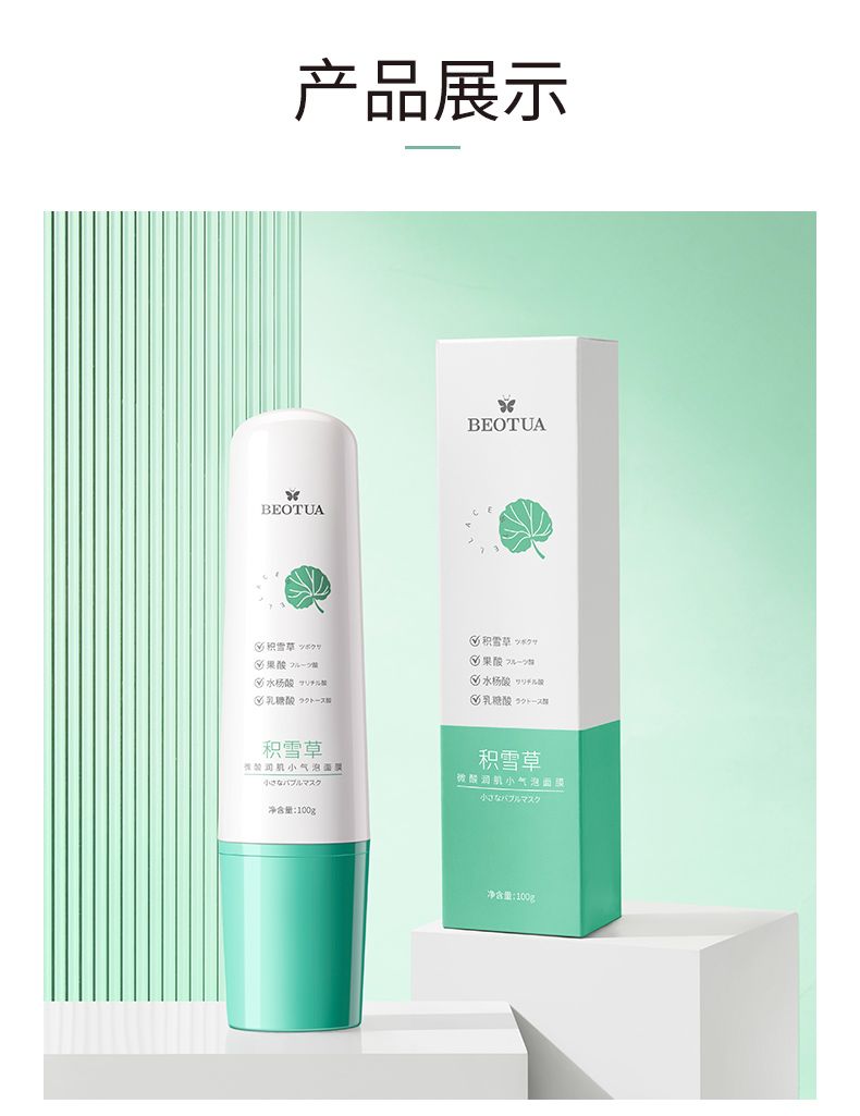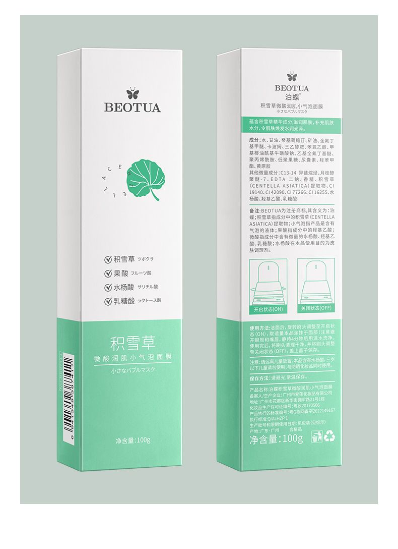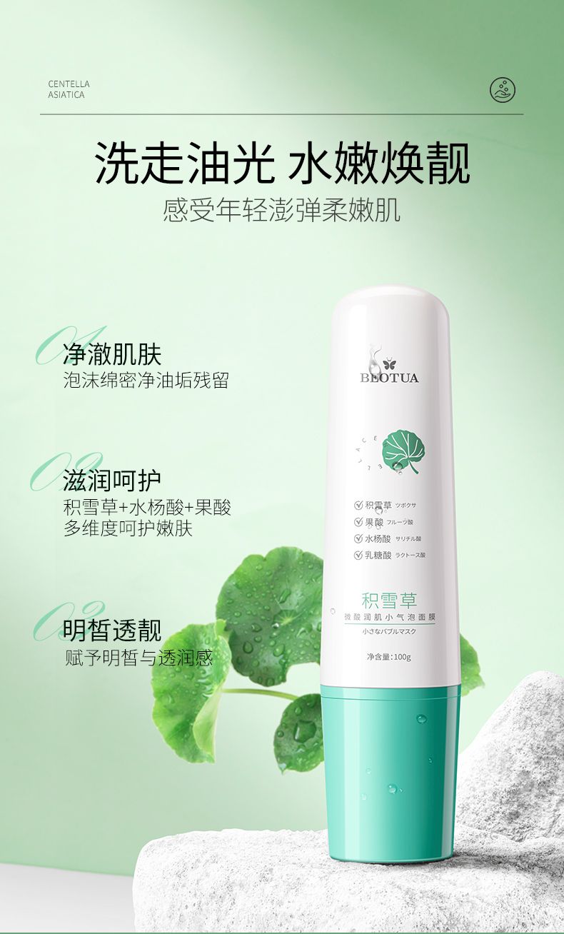 商品名称:泊蝶积雪草微酸润肌小气泡面膜100g保湿
