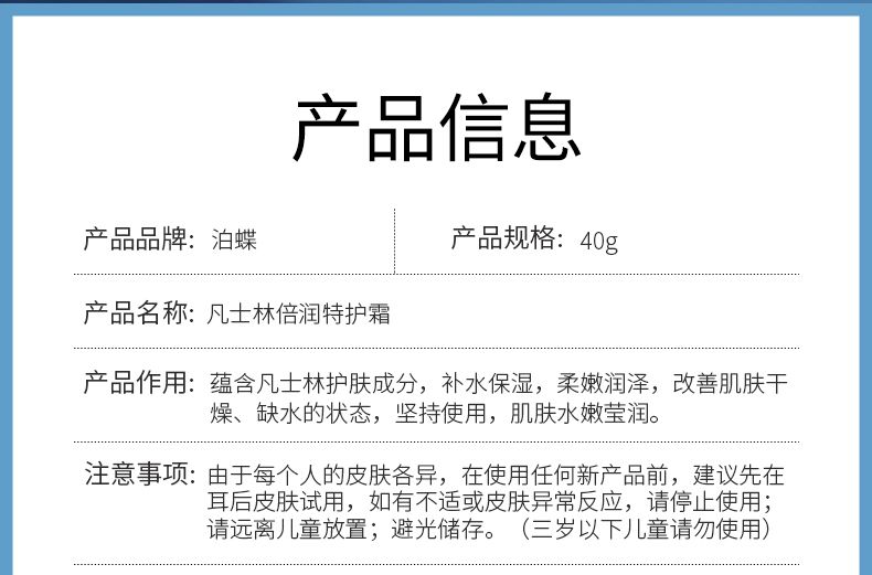 商品名称:泊蝶凡士林倍润特护霜40g保湿