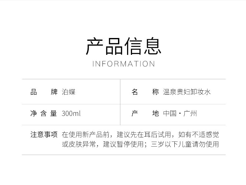 商品名称:泊蝶温泉贵妇卸妆水300ml