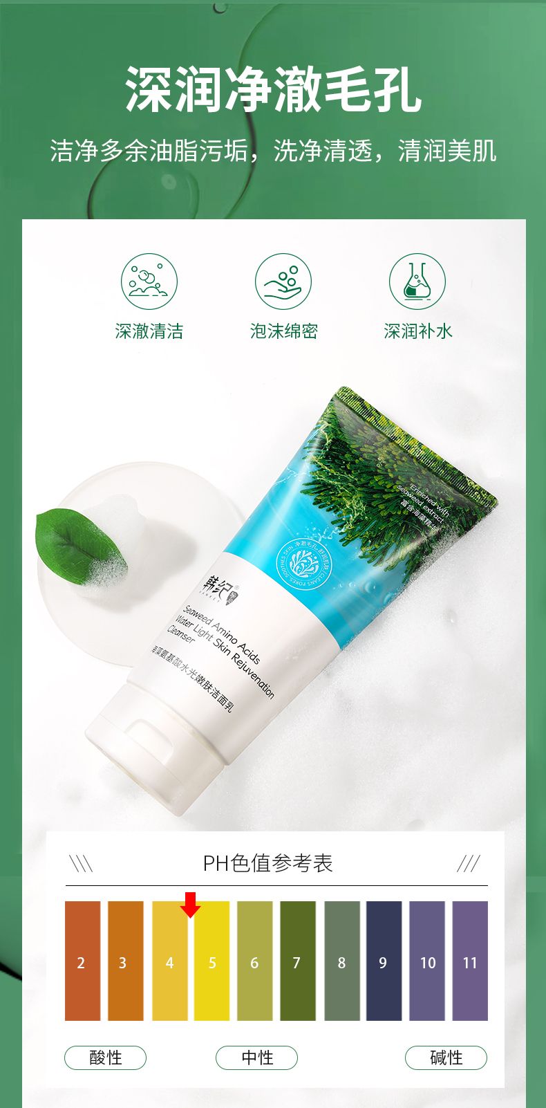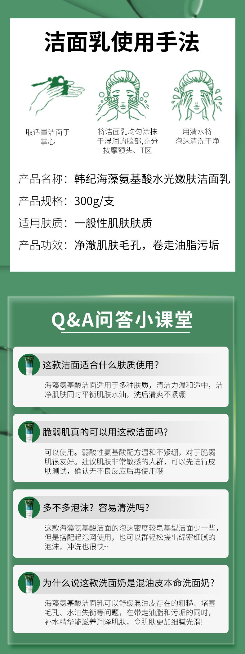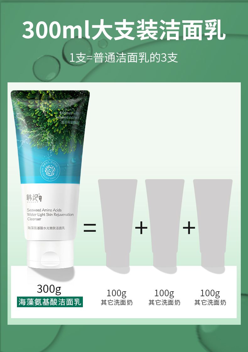 商品名称:Hankey/韩纪 海藻氨基酸水光嫩肤洁面乳 300g 深层清洁保湿洗面奶