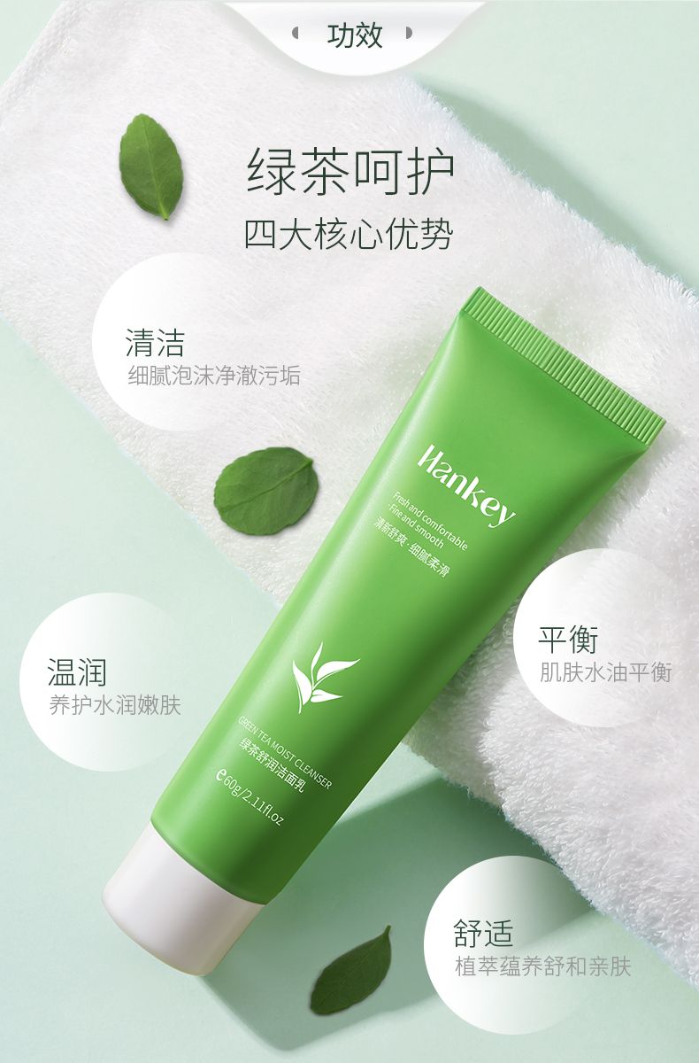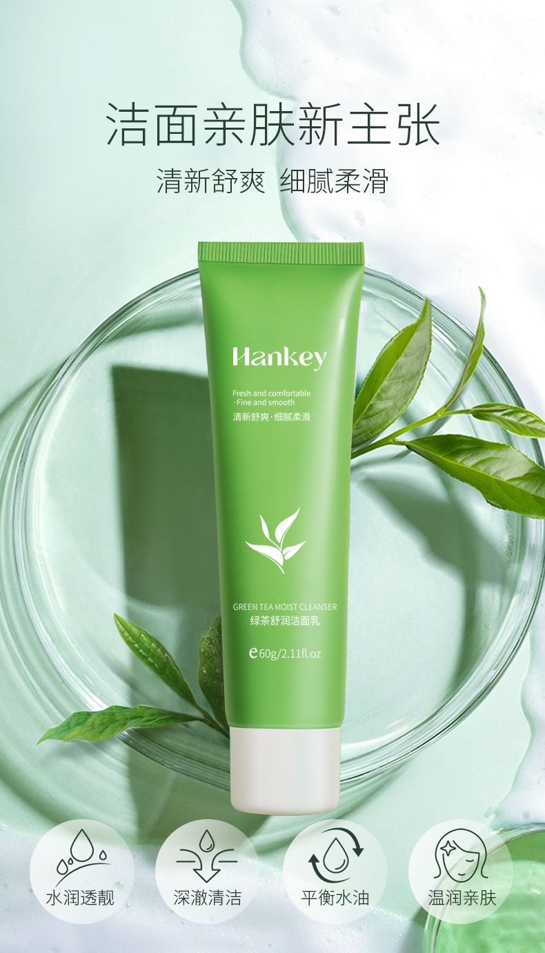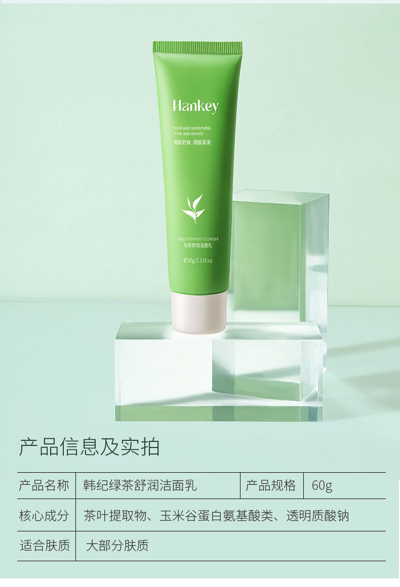 商品名称:Hankey/韩纪 绿茶舒润洁面乳60g 深层清洁保湿卸妆洗面奶