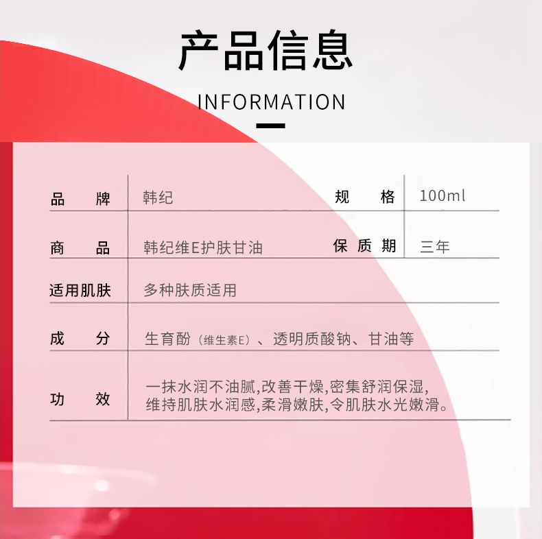 商品名称:Hankey/韩纪 维生素E护肤甘油100ml 保湿