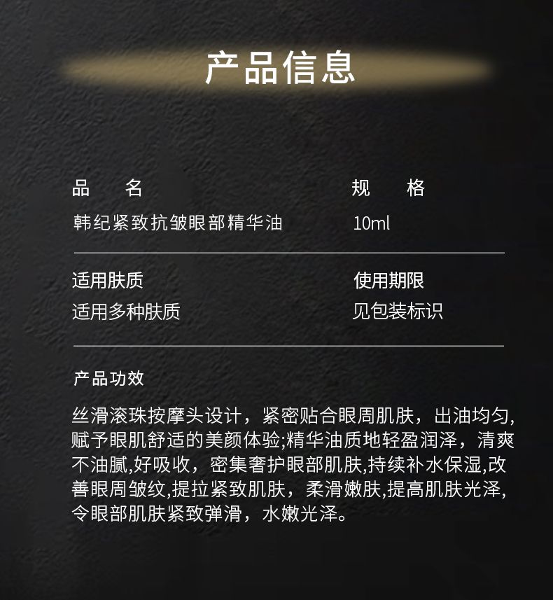 商品名称:Hankey/韩纪 紧致抗皱眼部精华油10ml保湿