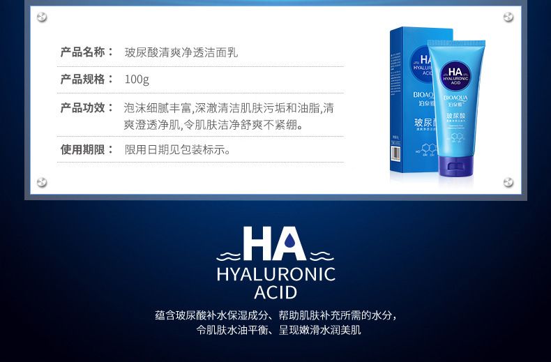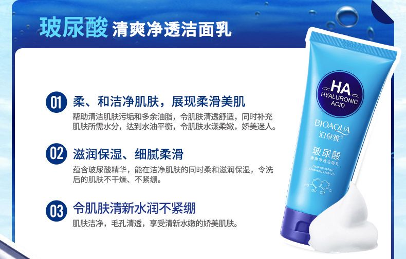 泊泉雅玻尿酸清爽净透洁面乳100g面部清洁保湿洗面奶