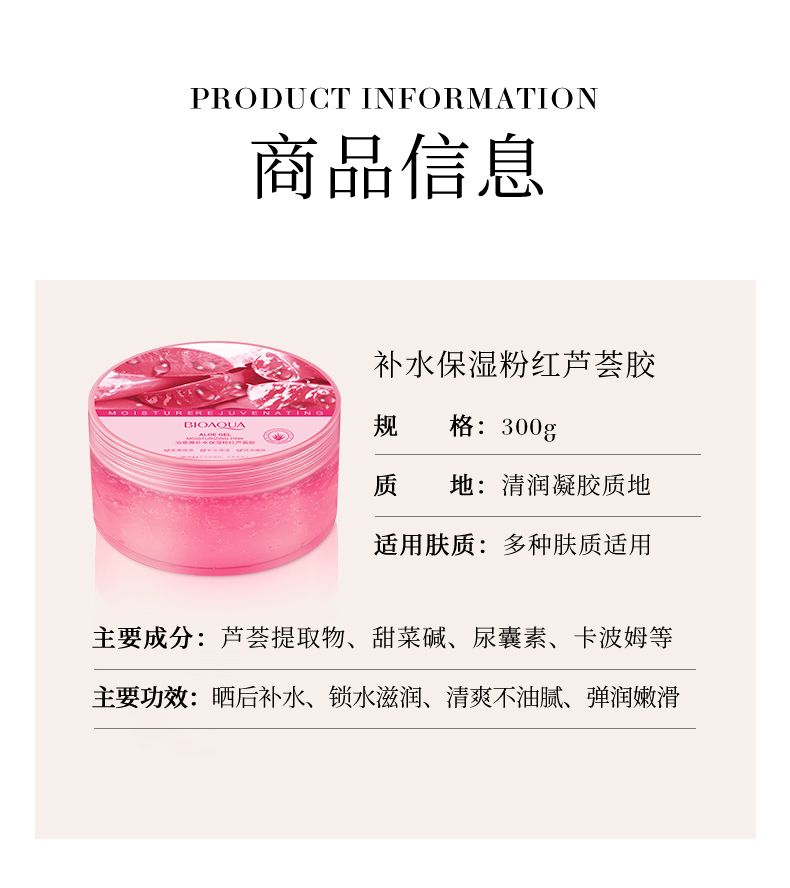 商品名称:泊泉雅补水保湿粉红芦荟胶300g