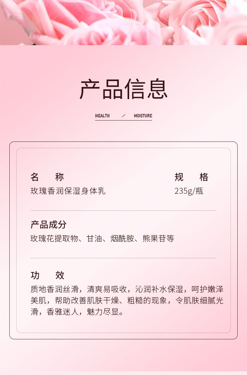 商品名称:泊泉雅玫瑰香润保湿身体乳235g