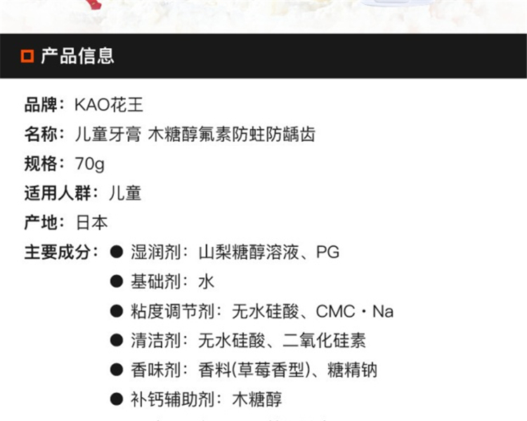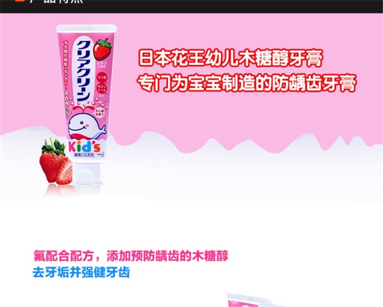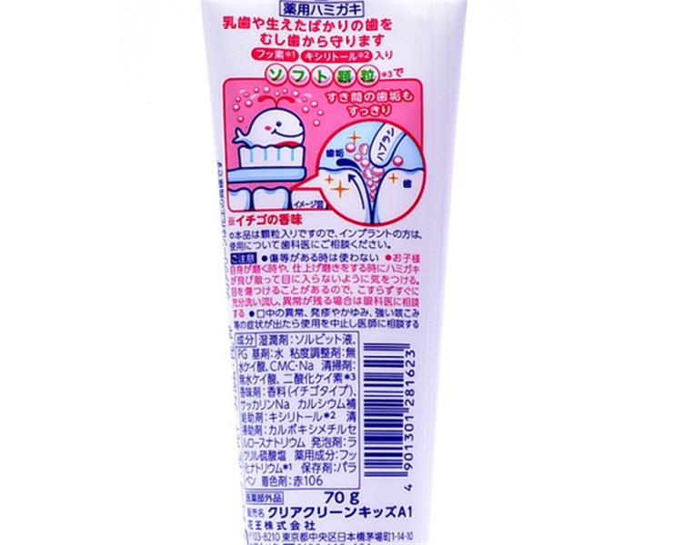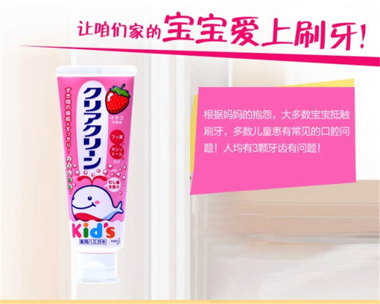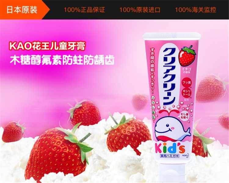 商品名称:KAO/花王 CLEAR CLEAN 儿童木糖醇细微颗粒牙膏 草莓味 70G