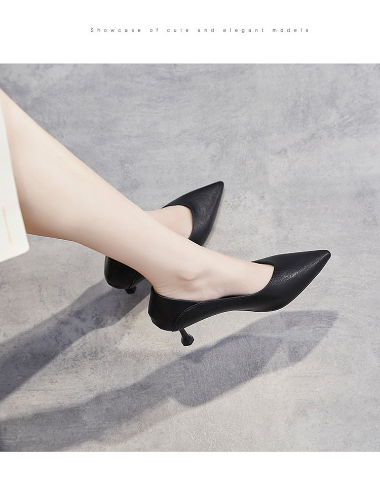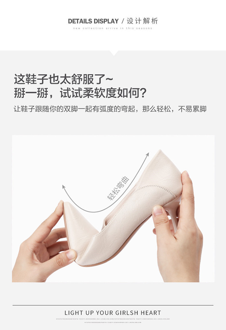商品名称:【优雅尖头】百搭黑色单鞋女一脚蹬女鞋春秋高跟鞋女细跟单鞋女鞋 370560