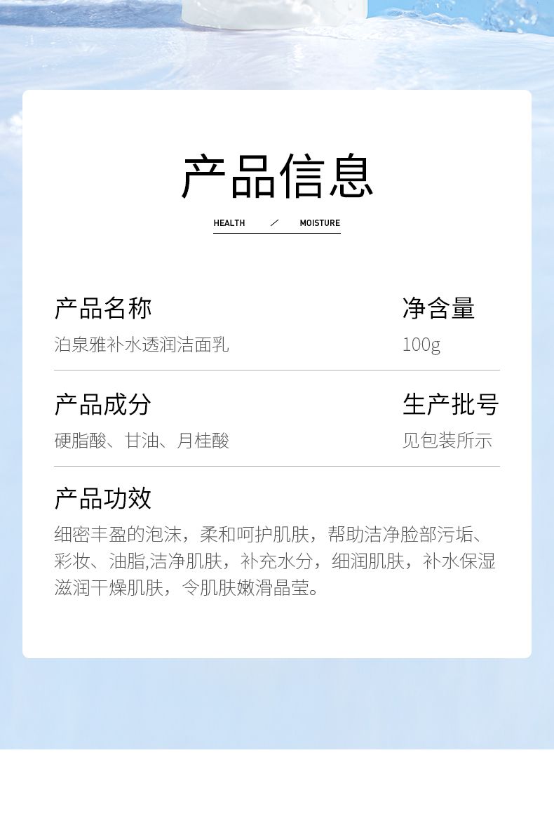商品名称:泊泉雅净爽澄透洁面乳100g深层清洁卸妆