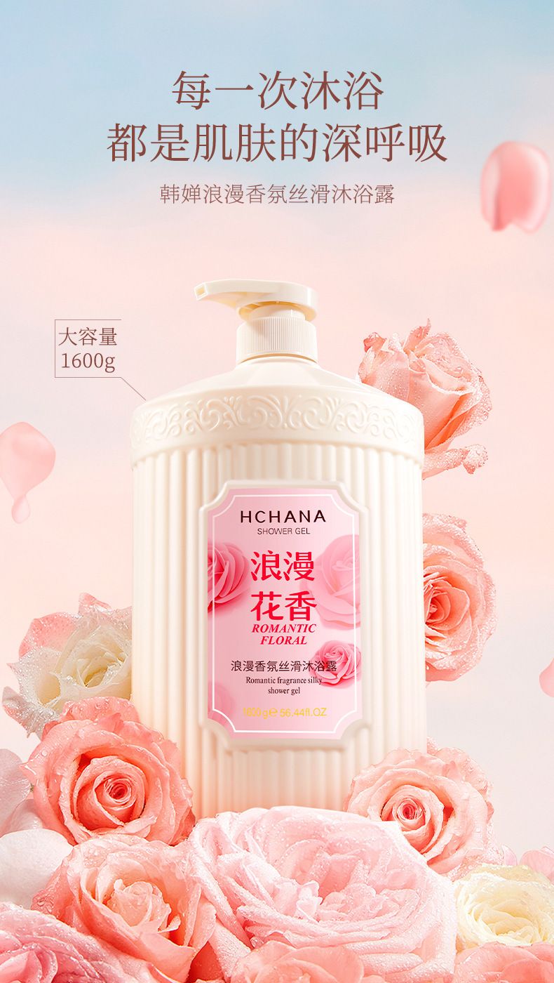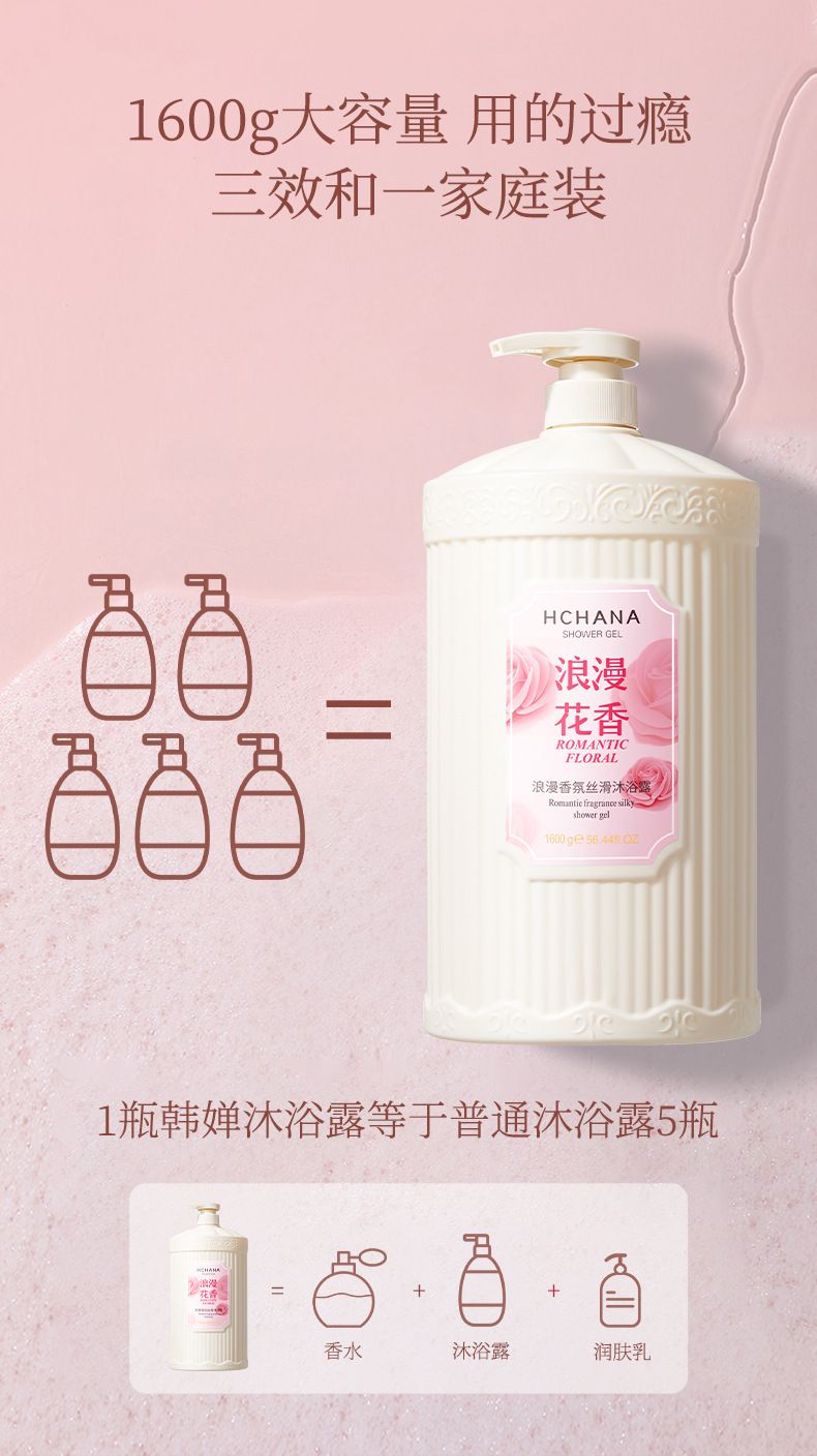 韩婵浪漫香氛丝滑沐浴露1600g大瓶大罐
