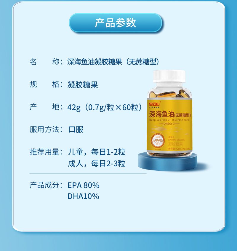 商品名称:广药集团白云山深海鱼油中老年心脑健康血脂血管搭血脂产品