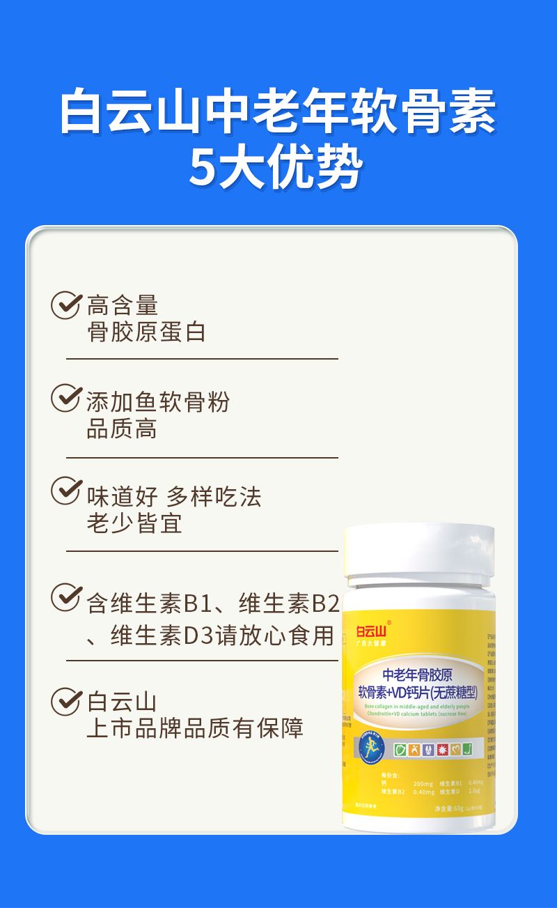 商品名称:5瓶广药白云山骨胶原软骨素VD钙片中老年人补充氨糖骨质疏松补软骨素补钙护关节