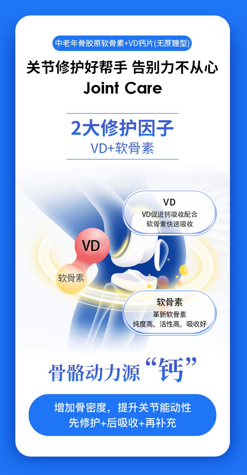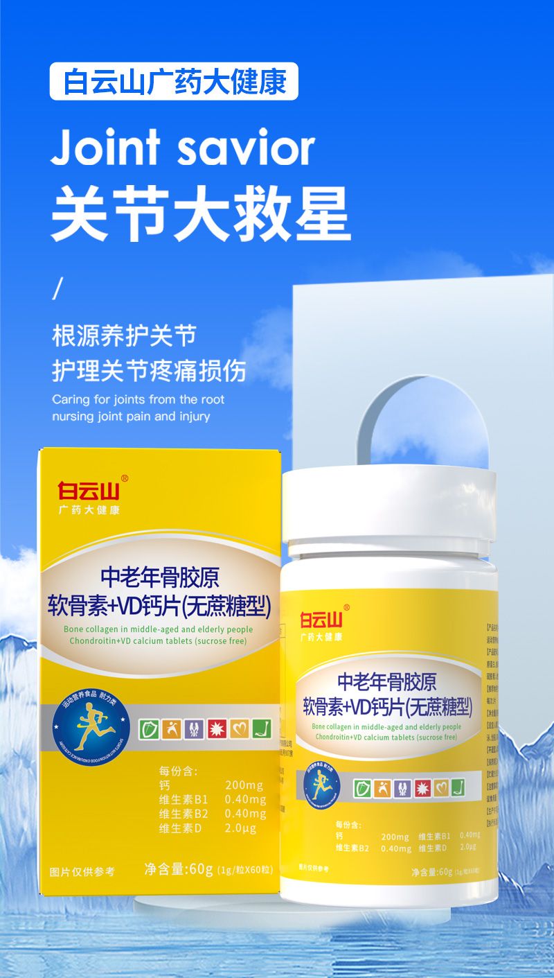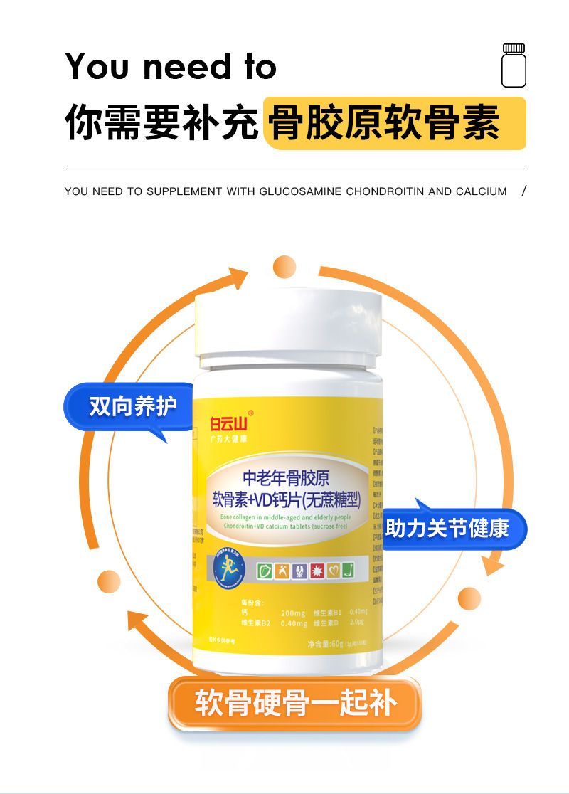 5瓶广药白云山骨胶原软骨素VD钙片中老年人补充氨糖骨质疏松补软骨素补钙护关节
