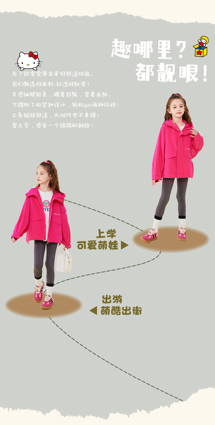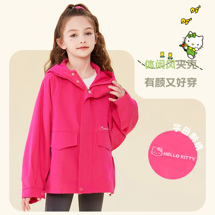 商品名称:春季女童连帽户外防风外套2025春款跑步运动卡通中大童装 837726