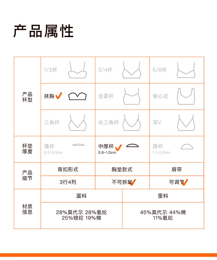 商品名称:NEIWAI内外橙标|零敏抹胸防滑固定杯文胸女士无钢圈内衣 706506