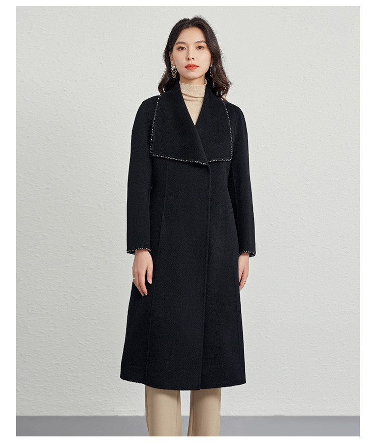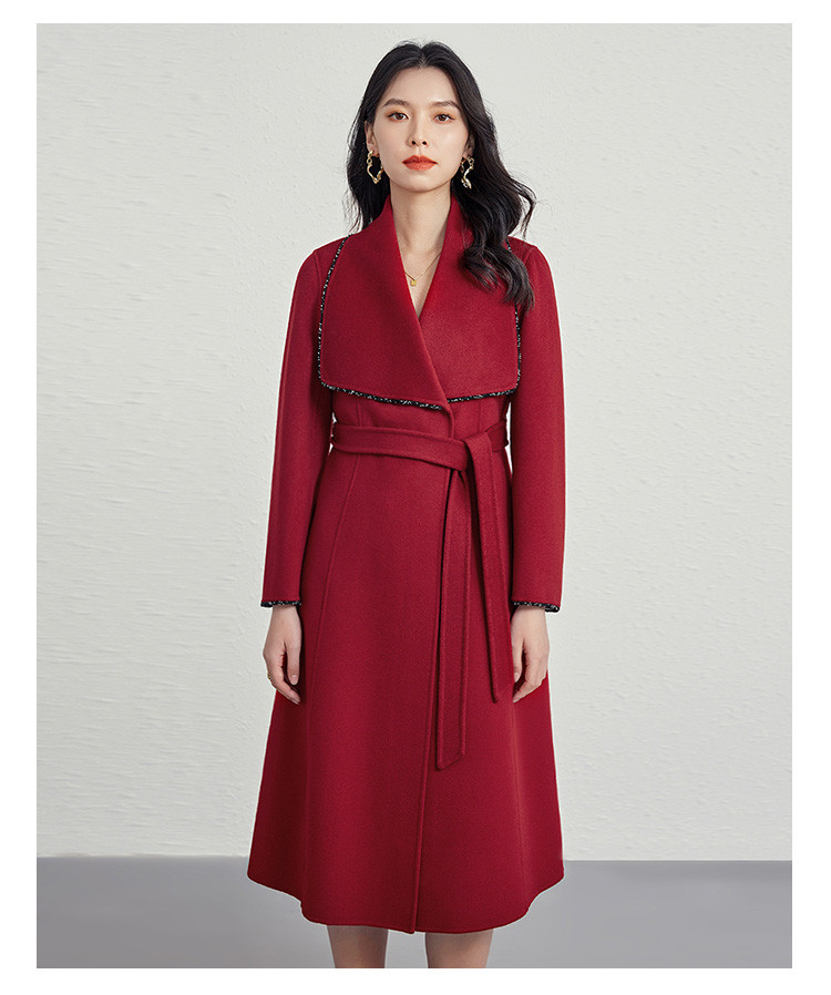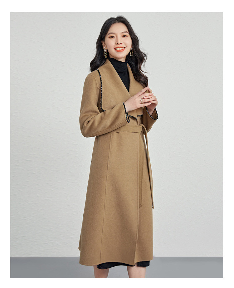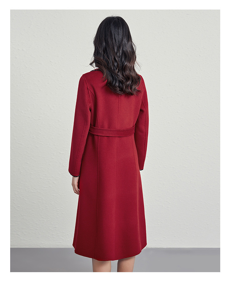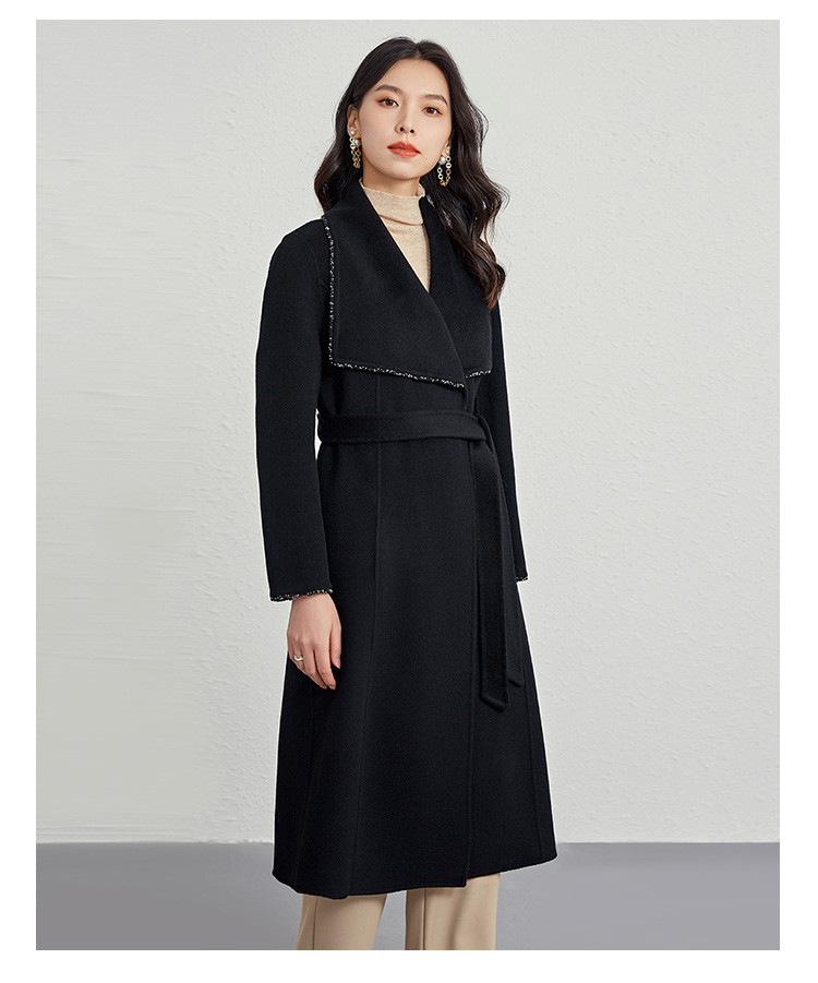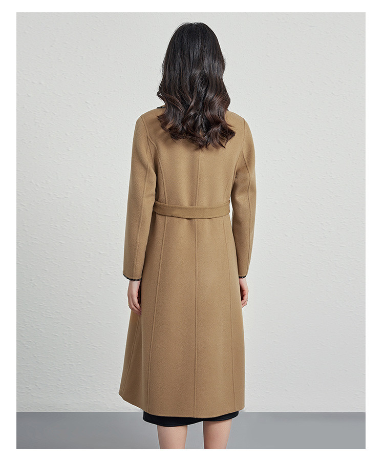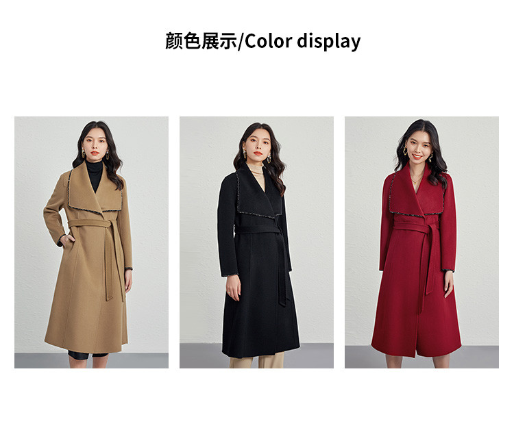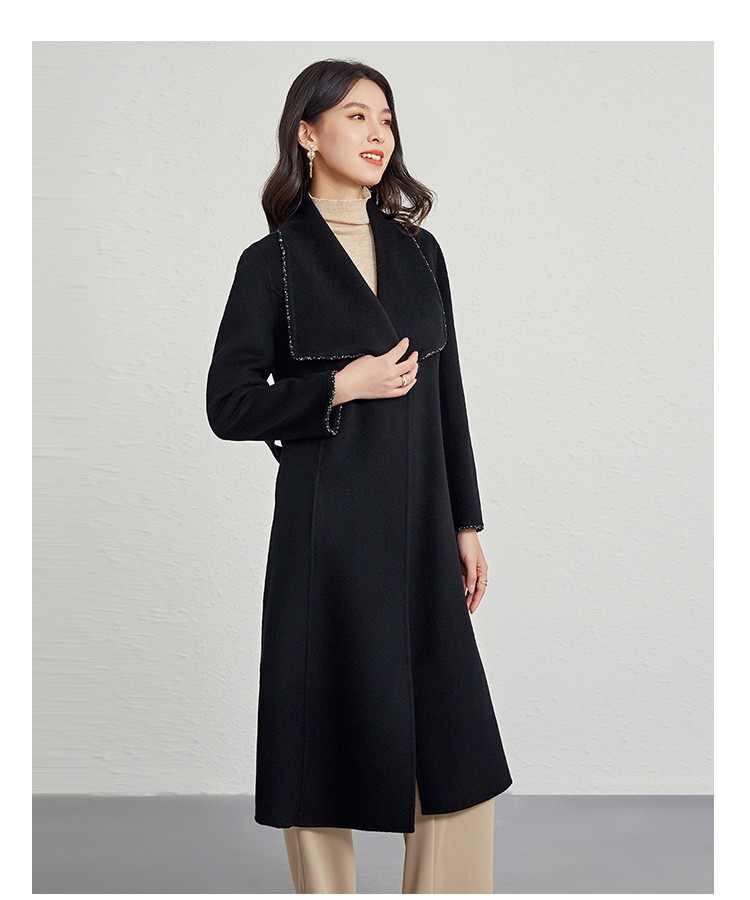 商品名称:秋冬气质镶边羊毛大衣女式长款100%绵羊毛双面呢外套 219999