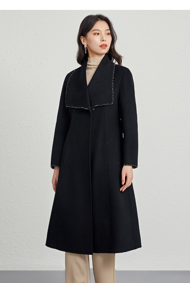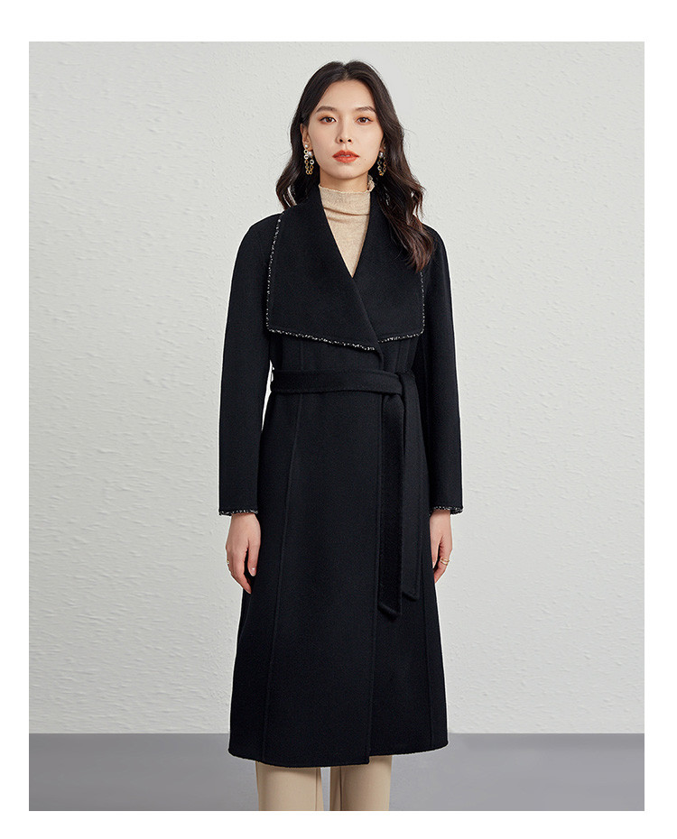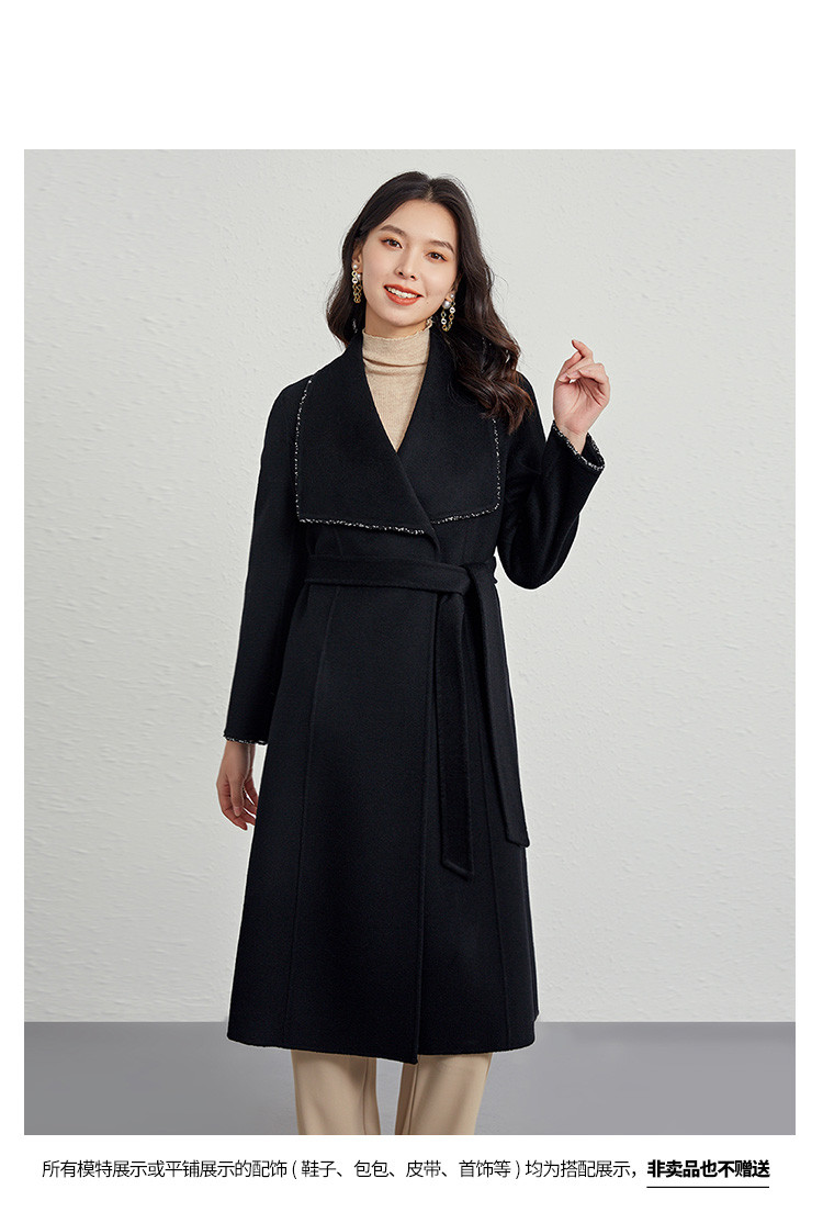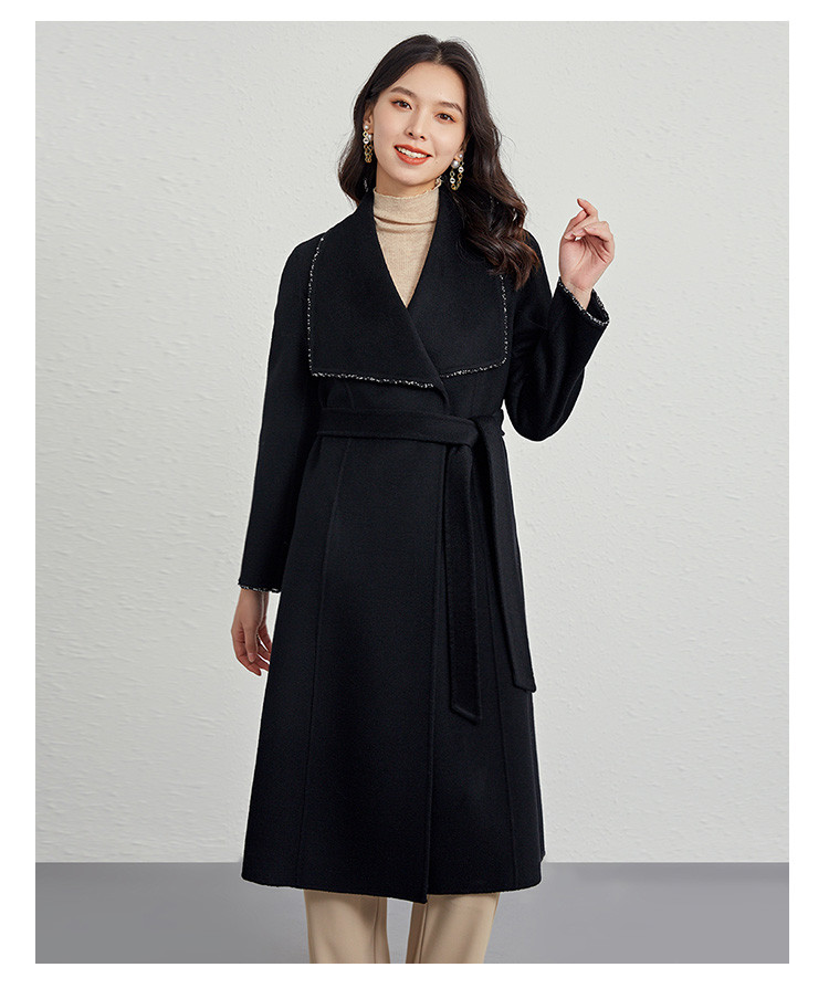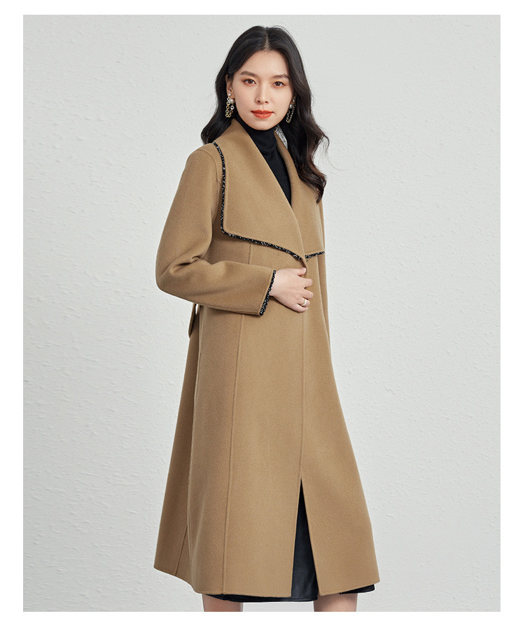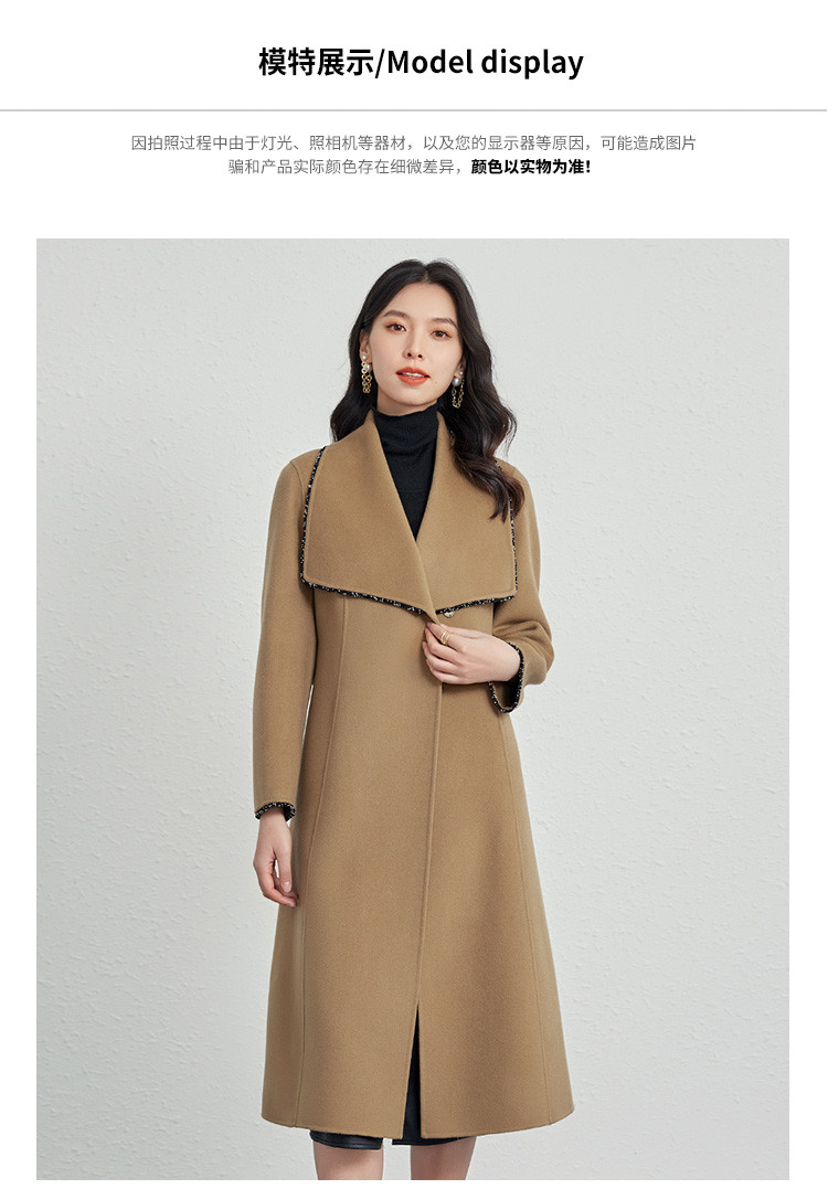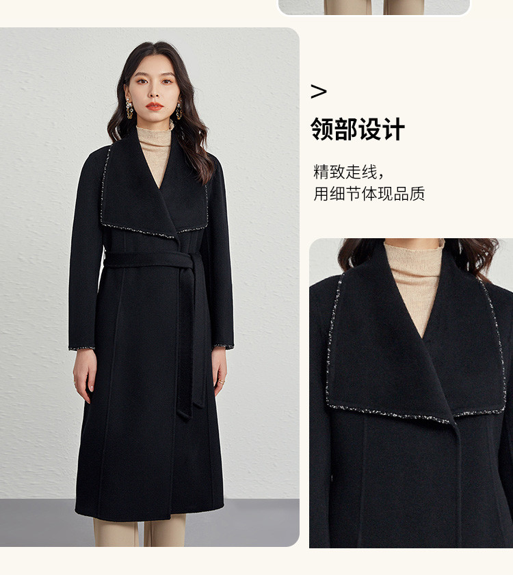 商品名称:秋冬气质镶边羊毛大衣女式长款100%绵羊毛双面呢外套 219999