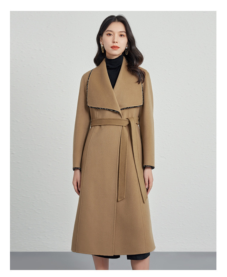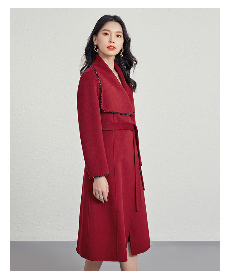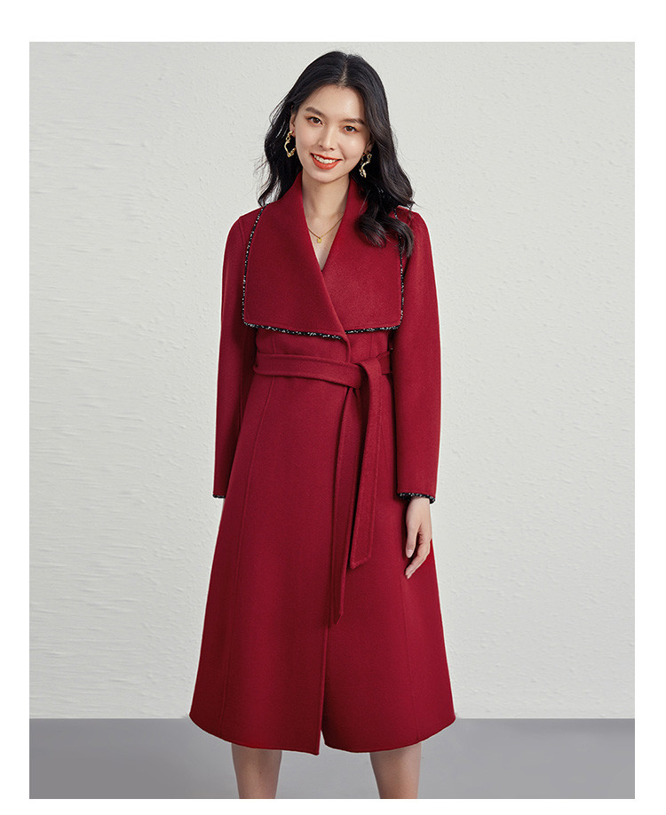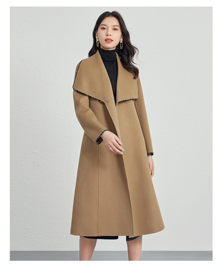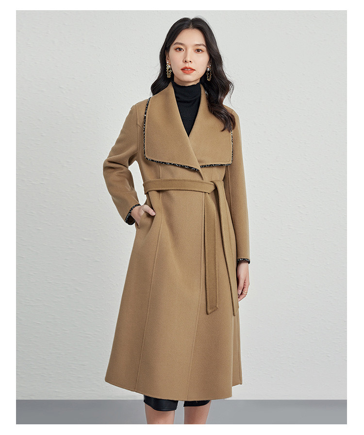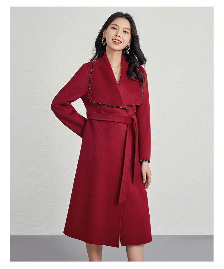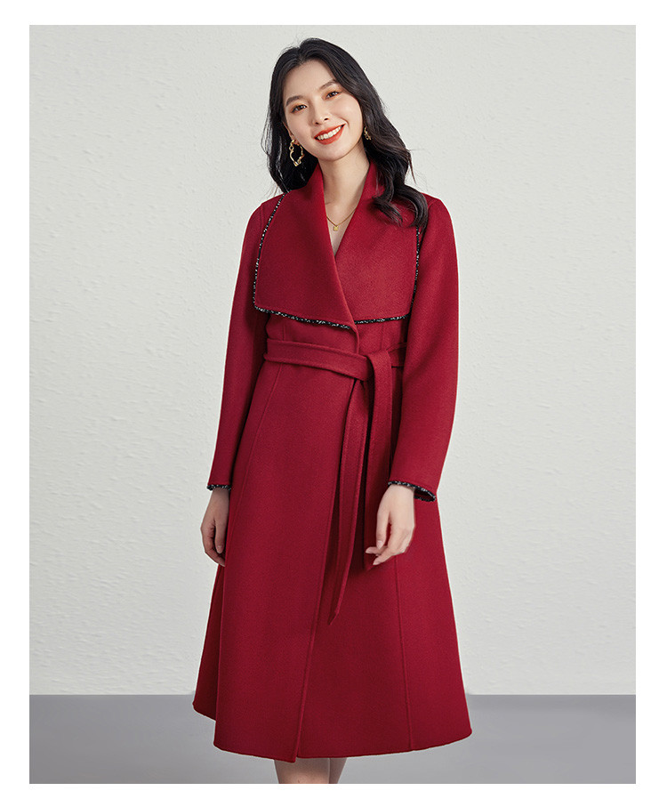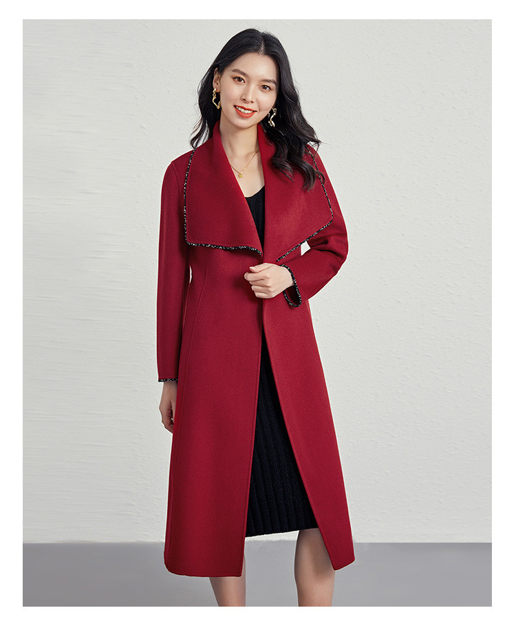 商品名称:秋冬气质镶边羊毛大衣女式长款100%绵羊毛双面呢外套 219999