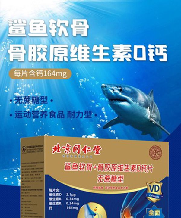 商品名称:北京同仁堂 鲨鱼软骨骨胶原维生素D钙 60片x2瓶