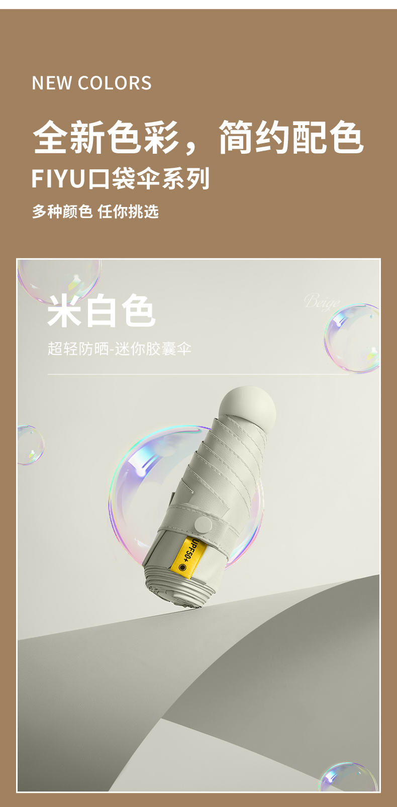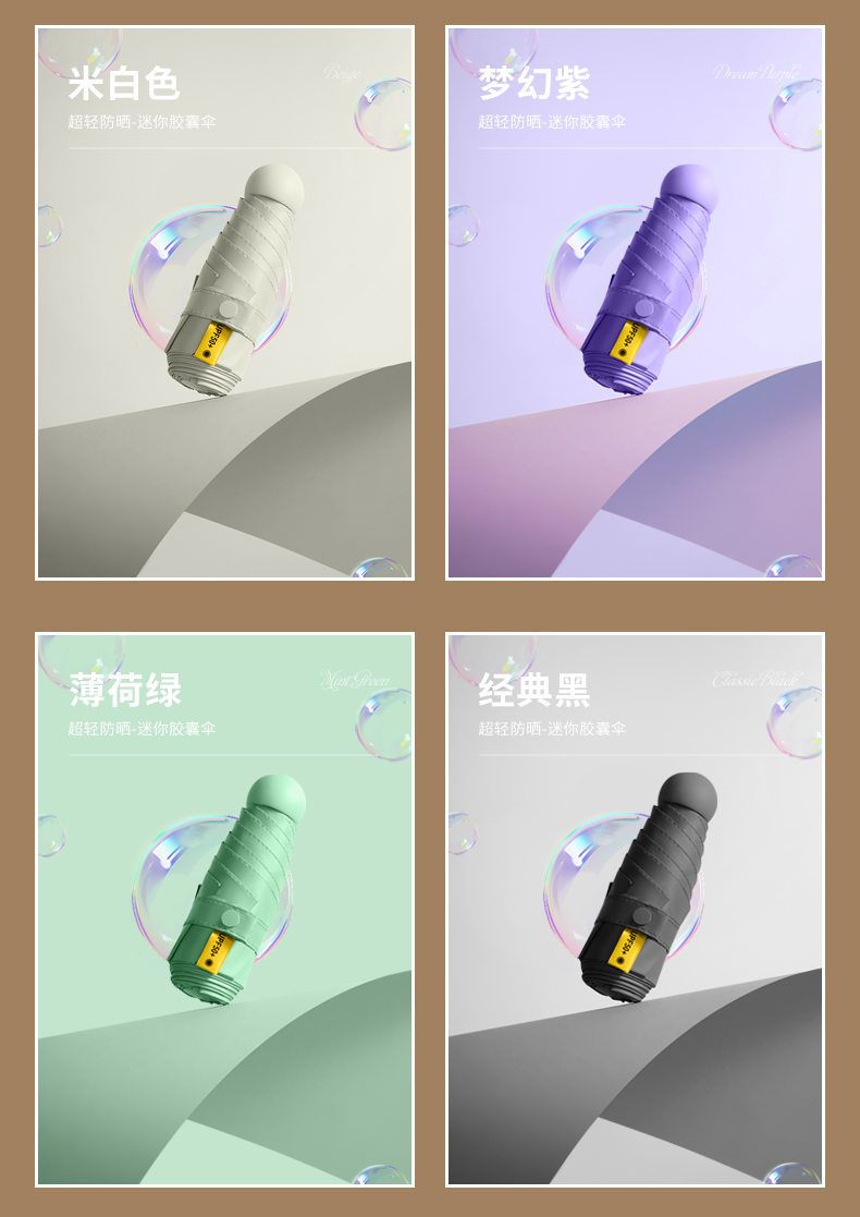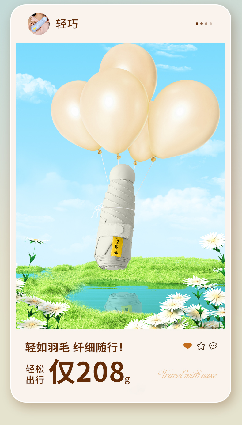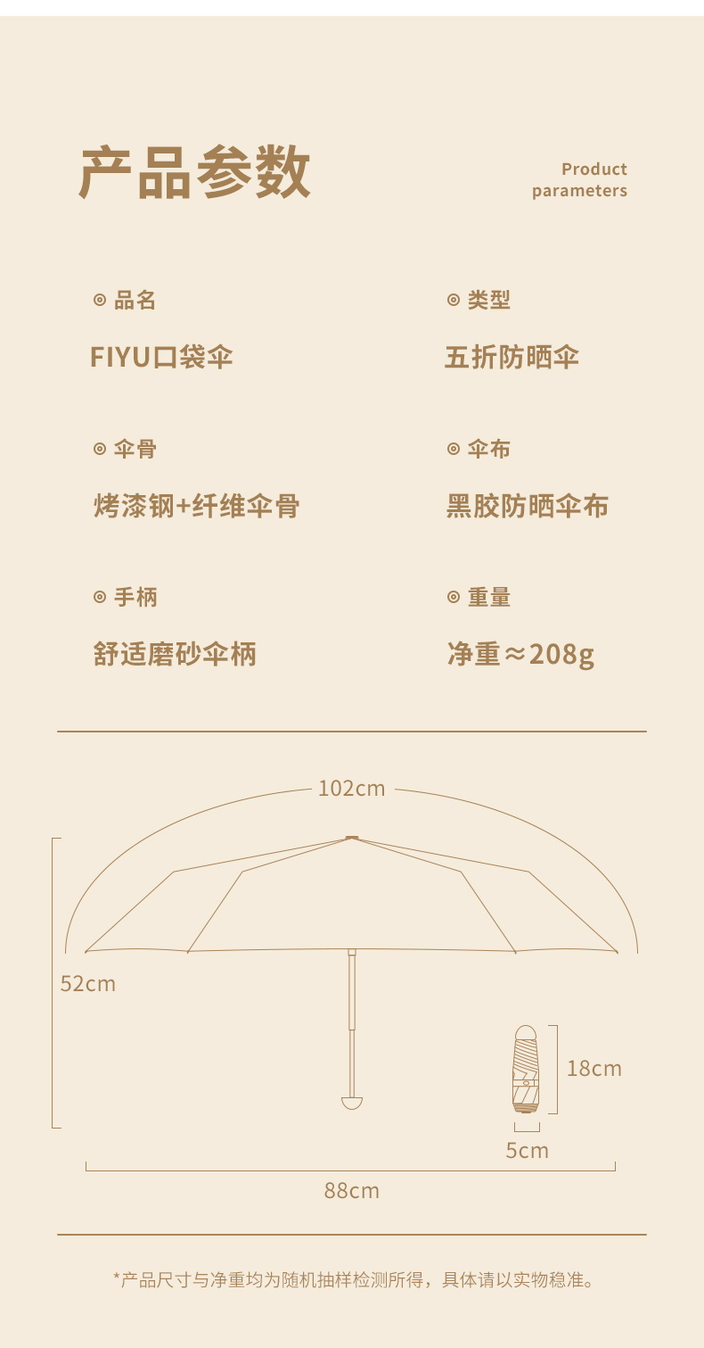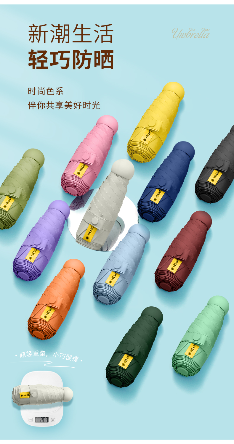 商品名称:FIYU新品口袋伞晴雨两用 防晒遮阳伞防紫外线 轻巧方便捷带