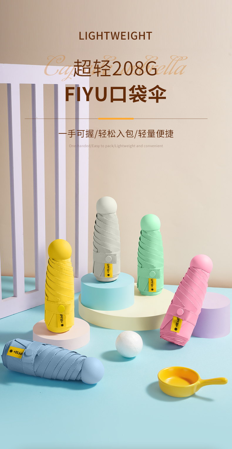 FIYU新品口袋伞晴雨两用 防晒遮阳伞防紫外线 轻巧方便捷带